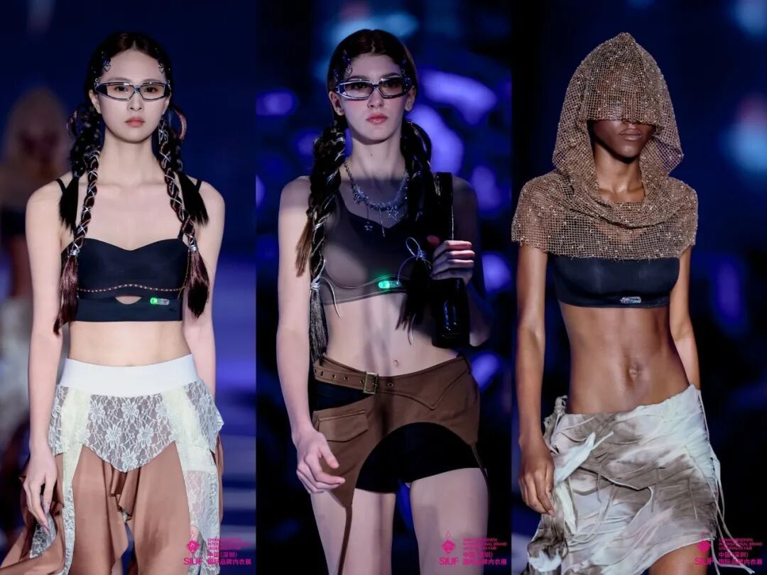 大秀分为三个篇章,层层递进:“显·东方”篇以非遗、肚兜、宋锦与绣花为线索,将东方美学的细腻娓娓道来;“融·西韵”篇用真丝与蕾丝的对话,完成东西方审美的柔和交织;“生未来”篇则发布了古今颠覆性新品概念——智能穿戴文胸,展现了老字号在科技与时尚融合上的前瞻探索。