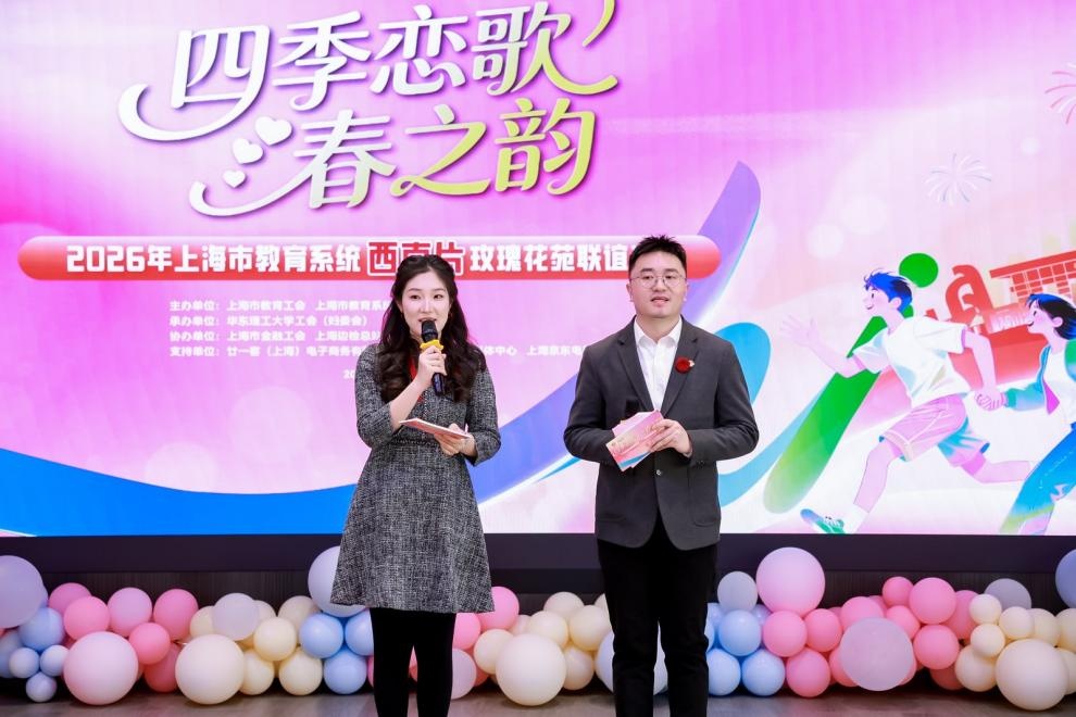 春风拂过芳华枝头 爱意如校园中悄然绽放的繁花 在书香氤氲的时光里 与美好不期而遇 这一场属于春日的浪漫奔赴 正沿着青葱校园与温情角落 书写一段关于相遇与心动的温暖序章 近日,由上海市教育工会、上海市教育系统妇工委主办,华东理工大学工会(妇委会)承办的“四季恋歌・春之韵”——2026年上海市教育系统西南片玫瑰花苑联谊活动在华东理工大学(徐汇校区)顺利举办。上海市教育工会常务副主席陈华、华东理工大学工会常务副主席张青及相关单位妇女干部组成的“红娘后援团”出席本次活动,与百余名优秀单身青年齐聚一堂,共赴这场春日浪漫之约,在轻松温馨的氛围中邂逅缘分、寻觅知音。 本次玫瑰花苑联谊活动在浪漫的音乐声中正式拉开序幕。活动伊始,陈华向参加本次联谊活动的单身青年朋友送上亲切的问候和衷心的祝福。她指出,“四季恋歌”联谊活动是教育系统服务青年的特色品牌,始终聚焦单身青年婚恋交友需求,助力青年扎根教育事业,收获幸福。希望各位青年勇敢追爱、真诚交友,在春日里邂逅美好,书写人生新篇章。 张青代表承办方向到场的单身青年表示热烈欢迎。她表示,高校始终坚守育人初心,也始终关心青年教职工的幸福生活。本次活动以春日为媒,为青年搭建真诚可靠的交友平台,愿大家在校园卸下疲惫、敞开心扉,在互动中遇见志同道合的伴侣。 本次联谊活动由上海外国语大学工会干部杨浩和上海外国语大学教务处干部胡佳柠联合主持。 听音传玩偶游戏成为彼此初遇的温柔破冰之旅。玩偶随着欢快的旋律在嘉宾手中轻快传递,当音乐骤停时,幸运嘉宾上台自我介绍,拉近了彼此的距离。现场洋溢着青春活力的氛围,为后续交流奠定了轻松愉悦的基调。 暖场之后,内场趣味游戏轮番上演。你画我猜环节中,嘉宾们脑洞大开、默契配合,夸张的比划与机智的猜测引得现场笑声不断;缘分拼图游戏里,男女嘉宾携手协作,拼合专属爱心图案,在指尖配合中拉近彼此距离;气球塔搭建挑战中,嘉宾们小心翼翼、同心协力,用信任与创意构筑起浪漫的气球高塔,协作的温情在现场悄然蔓延。 外场趣味闯关环节亦是妙趣横生。组队套圈欢乐满满,嘉宾们瞄准投掷,在欢声笑语中收获惊喜;俄罗斯方块考验团队配合,嘉宾们齐心协力完成拼接,尽显默契;气球运送游戏中,嘉宾们协作运送气球,在配合中感受心动,春日的喜悦在现场传递。 上海市五一劳动奖章获得者、资深整理收纳师辜井以“这么‘收’,‘纳’么美”为理念,向大家展示了整理收纳是逻辑与美学的双重平衡,并现场介绍了生活中的收纳小技巧。嘉宾现场组队参与收纳体验,不仅学会了实用技能,还在互动中加深了了解、增进了情谊。 爱心多肉制作环节中,嘉宾们亲手栽种多肉,精心搭配装饰,将心意融入每一盆小巧的绿植中。制作完成后,男女嘉宾自由互换作品,以多肉为媒传递春日的温柔与心意,让浪漫在指尖流转。 活动的华彩乐章在“真情告白”环节如期奏响。经过四个多小时的温馨相处与深度交流,多位青年嘉宾写下心动对象的号码投入“告白邮筒”。12对青年男女勇敢迈出第一步,在全场掌声与祝福中表达了对进一步交往的诚挚意愿。 莅临本次活动的各单位妇女干部化身“热心红娘”,给予单身男女青年情感指引和支持。她们作为活动现场最温暖的“丘比特”,悄悄观察着每一个心动瞬间,鼓励他们勇敢迈出寻找真爱的第一步,找到同频共振的灵魂。本次“四季恋歌・春之韵”联谊活动,以丰富的互动环节、温馨的活动氛围,为单身青年搭建了真诚交友的平台,既展现了青年们的青春风采,也让浪漫与温暖在春日校园绽放。未来,上海市教育工会、上海市教育系统妇工委将持续擦亮“玫瑰花苑”服务品牌,开展更多优质联谊活动,为青年职工的幸福生活保驾护航,让更多缘分在四季恋歌中悄然绽放。 愿每一份在春日里等候的心意 都被温柔春风轻轻托起 恰逢芳华相聚时 遇见同频共振的身影 愿每一颗奔赴温暖的真心 都能在岁月中圆满相逢 四季恋歌婉转长鸣 让浪漫与缘分岁岁相拥
