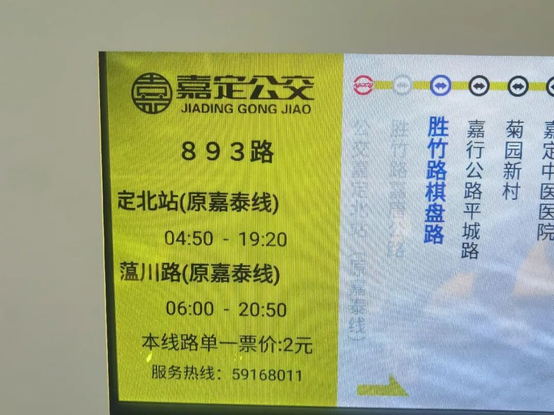3月30日上午7点,记者在公交嘉定北站看到,站台上的线路牌已更换为崭新的893路。车内的电子站牌名称也同步更新,屏幕上正循环显示线路更名公告。随着发车时间临近,乘客陆续上车,在前门的电子刷票机上扫码或刷卡,快速完成购票落座,现场秩序井然。