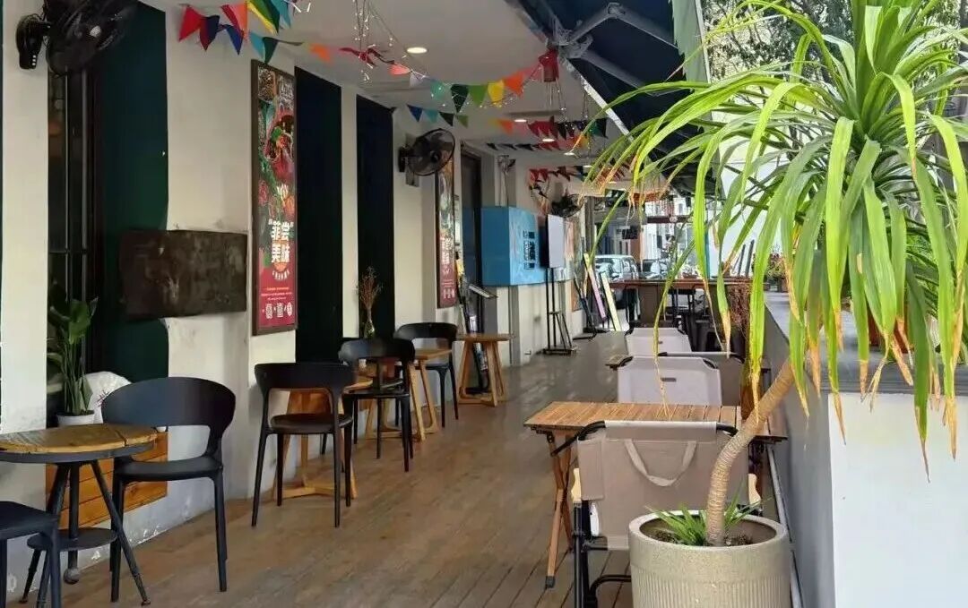 临河户外座位被绿意与波光环绕,是闹市里藏起来的治愈小天地,慢坐片刻便被温柔包裹。