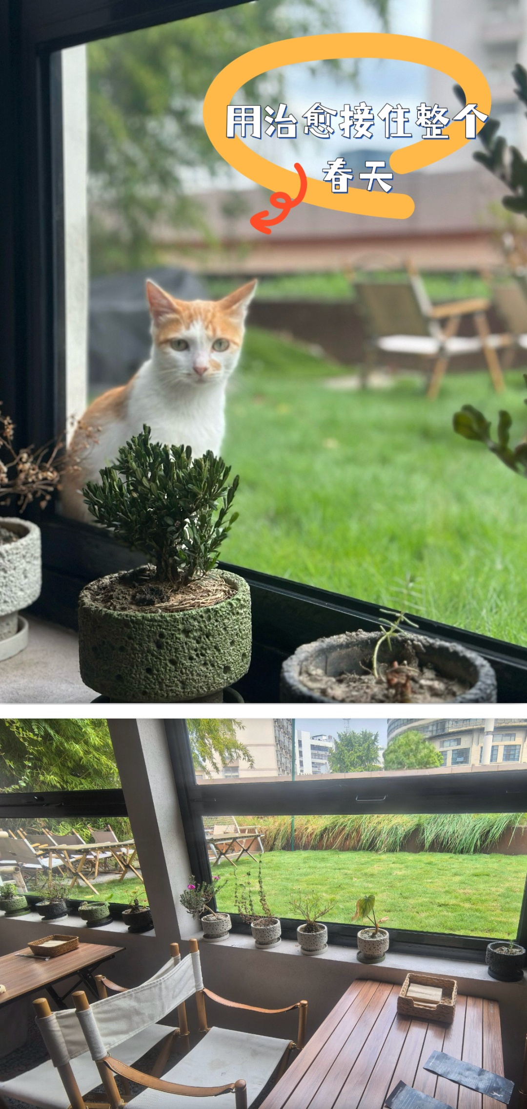 唱片主题咖啡的户外座位,黑胶旋律随暖阳流淌,咖香混着春风漫溢,工业风老建筑作背景,随手一拍就是春日清新大片。