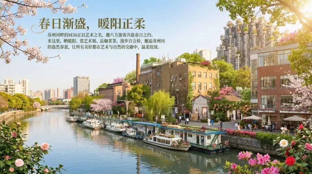 春风漫过苏州河,吹醒M50的艺术肌理,老厂房红砖叠着新芽,涂鸦墙色彩揉着柔光,河岸春色铺展成画,漾开一江粼粼春意。趁春光正好,M50邀您共赴这片苏州河畔的艺术天地,以看展、品咖、漫步、相逢,解锁春日最惬意的打开方式。