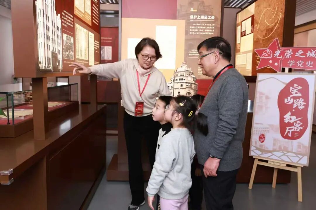 活动中,老党员爷爷奶奶们用朴实亲切的语言,为孩子们讲述永兴路等“兴”字路名的初心、扬波大厦的红色文脉与时代变迁。孩子们走进三曾里纪念地、上海总工会遗址宝山里2号、商务印书馆旧址……聆听毛泽东、瞿秋白等革命先辈的事迹,通过儿童版讲解、主题展陈,让厚重历史可触可感。