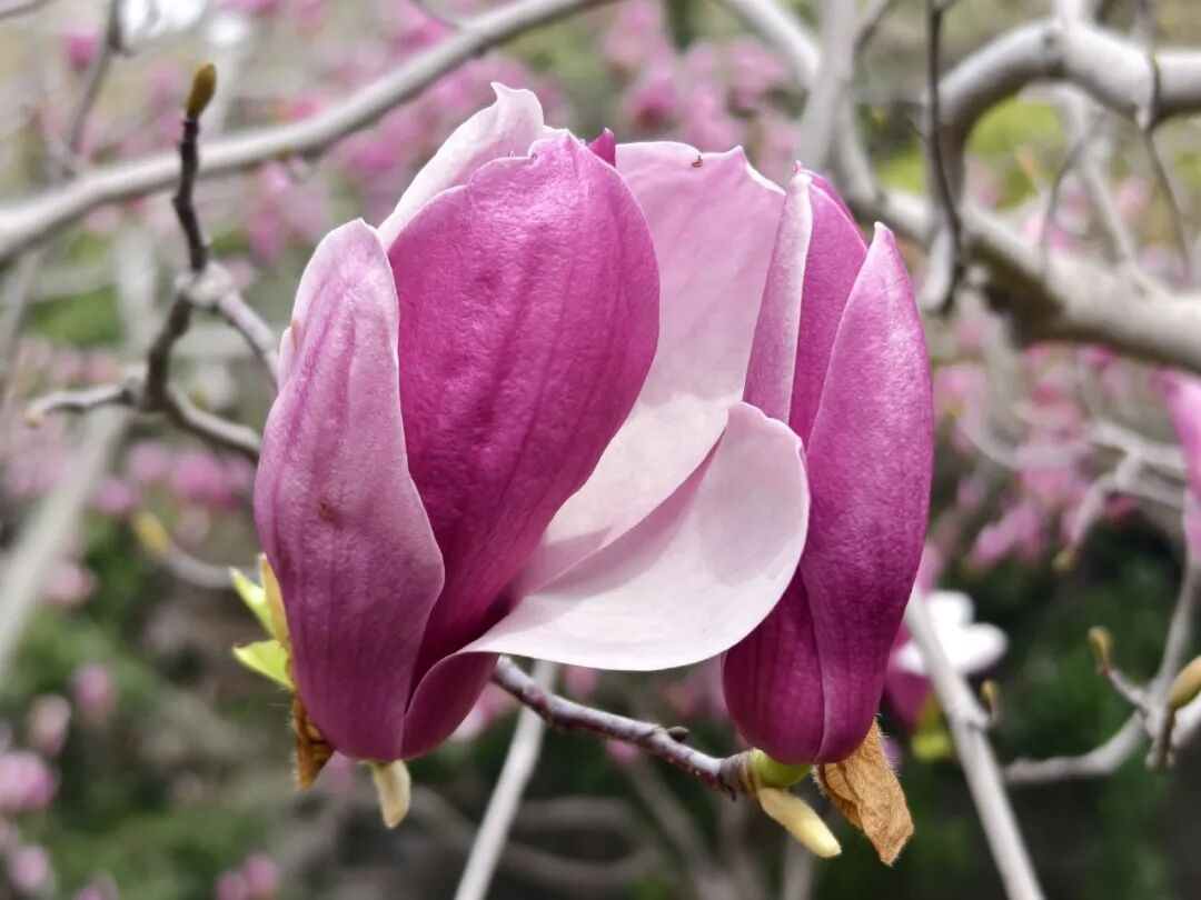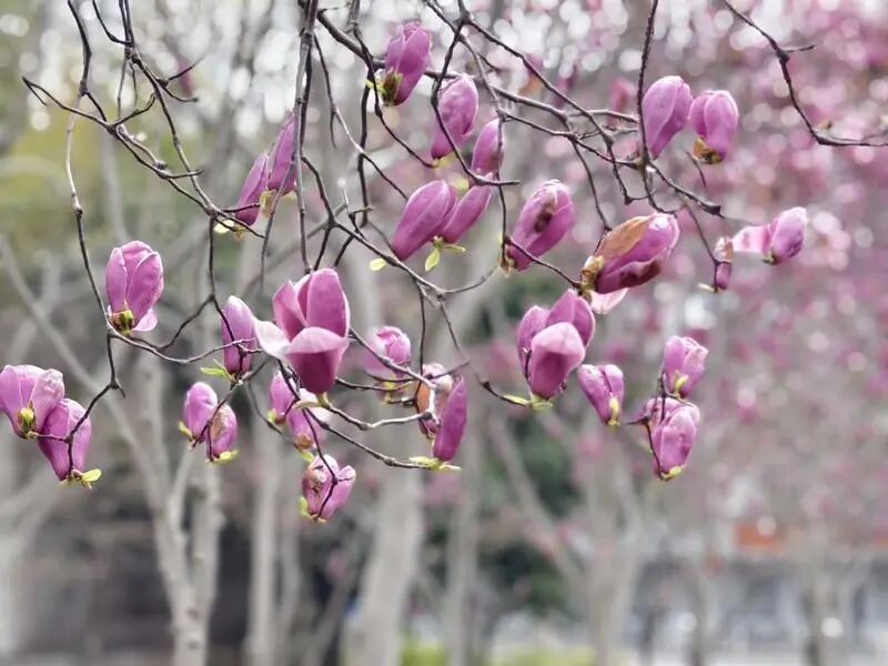 沪上紫玉兰哪家强?宝山双城路看过来。时间来到了3月下旬,当下“玉兰家族最靓的仔”非紫玉兰莫属。在宝山双城路小广场身后的“口袋公园”里,紫玉兰把娇艳和芬芳“送”给过往的市民。