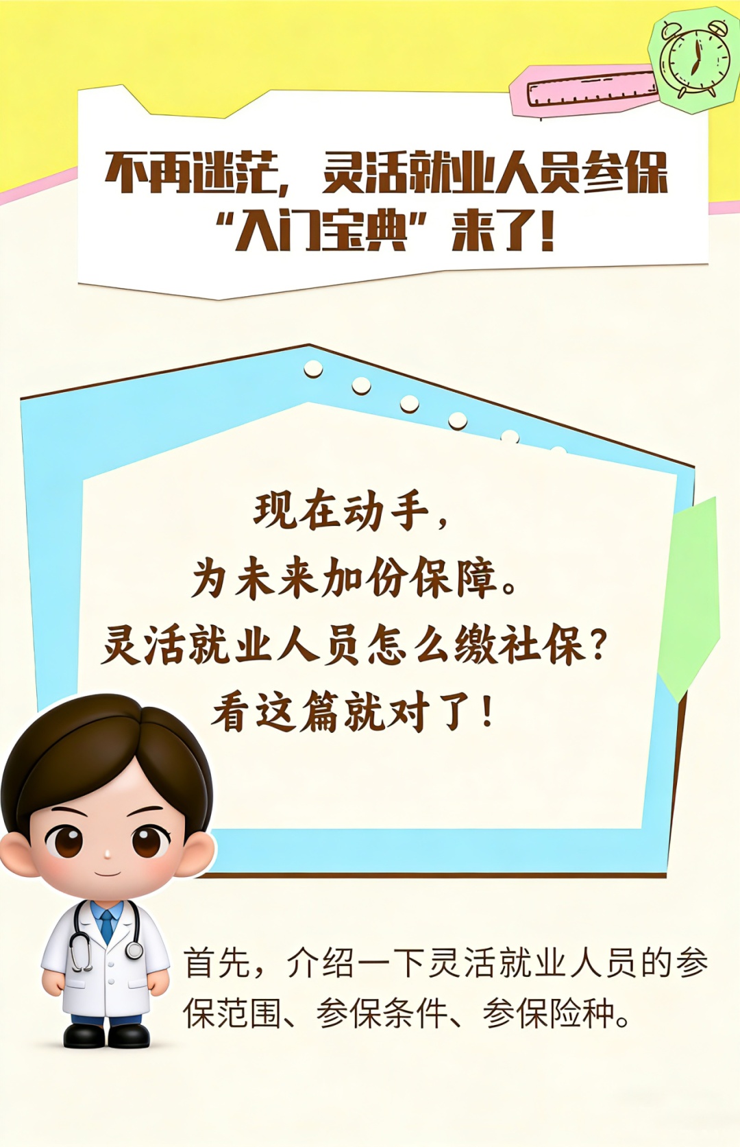 参保范围 灵活就业人员是指年满16周岁且未达到法定退休年龄,在本市劳动就业的自雇人员、无雇工个体工商户,未在用人单位参加基本养老、医疗保险的非全日制从业人员以及其他灵活就业人员。 参保条件 未达到法定退休年龄。 已按规定办理灵活就业登记手续的人员,按照灵活就业方式首次或接续缴费。 参保险种 灵活就业人员在本市参加基本养老保险和医疗保险。 其次,目前本市灵活就业人员参保可通过线上和线下两种渠道办理。 线上办理 登录“随申办市民云APP”,搜索并进入【灵活就业一件事】,根据办理流程进行操作。 注:本市户籍、外省市户籍灵活就业人员可通过线上渠道办理。 线下办理 灵活就业人员需携带个人有效身份证件原件(或电子亮证)至就近的社区事务受理服务中心办理参保手续。 灵活就业人员实行按月缴费,不得以事后追补缴费的方式增加缴费年限。