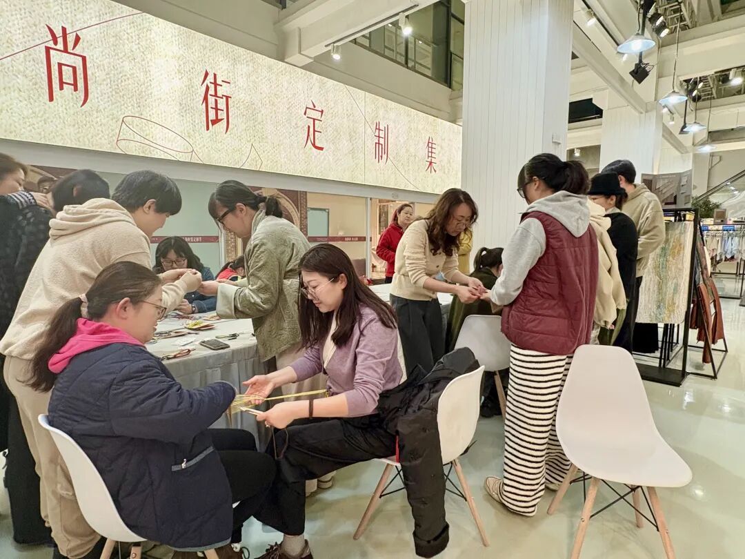一旁的轻定制体验区内,上海服装集团与上海纺织博物馆开设专属手作课程。专业老师现场指导,市民可亲手缝制领结、编织中国结、制作创意胸针,在一针一线中完成专属定制初体验。“能亲手触摸面料、动手做小饰品,这种体验很新奇,也让我对服装定制有了更直观的了解。”参与手作体验的市民分享道。