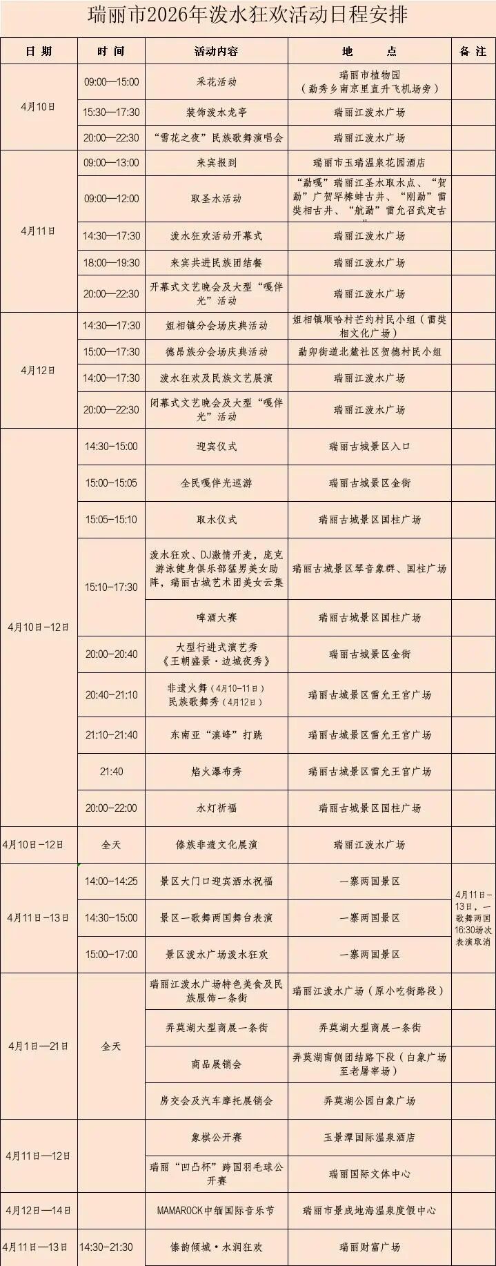 地点:瑞丽江泼水广场(综合楼二楼宴会厅)