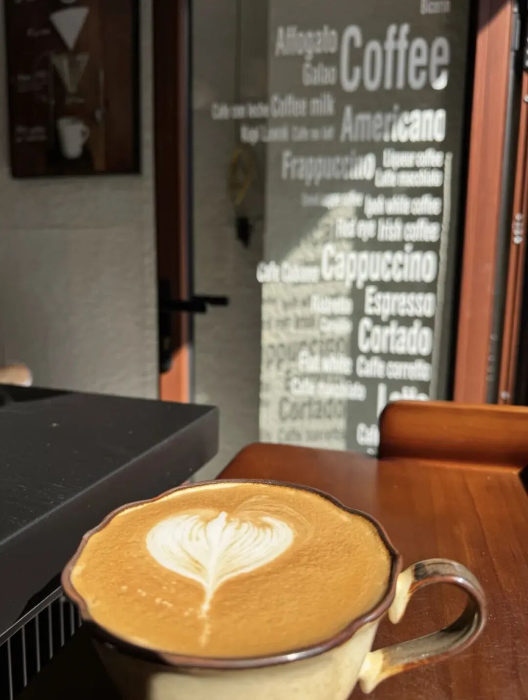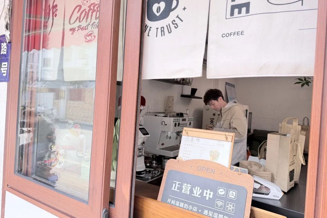阳光斜斜地照进弄堂。菜场里依然是熟悉的讨价还价声,买完菜的阿姨拎着袋子从店门前经过,好奇地往里张望一眼。店内,小朱正在吧台后安静地做着咖啡,磨豆机的声响混在弄堂的烟火气里,竟然意外地和谐。