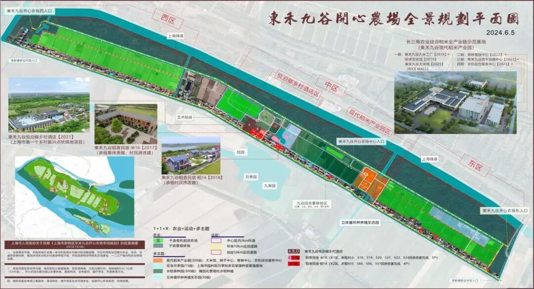 崇明区竖新镇东禾九谷开心农场,是上海市首个乡村振兴“点状供地”项目,也是首家获得上海市人民政府专项规划批复的开心农场。