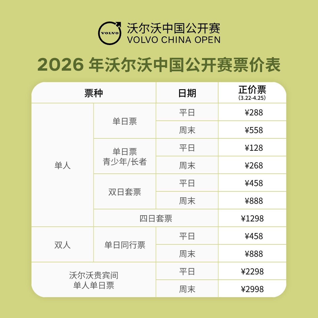 沃尔沃中国公开赛周末单日单人票