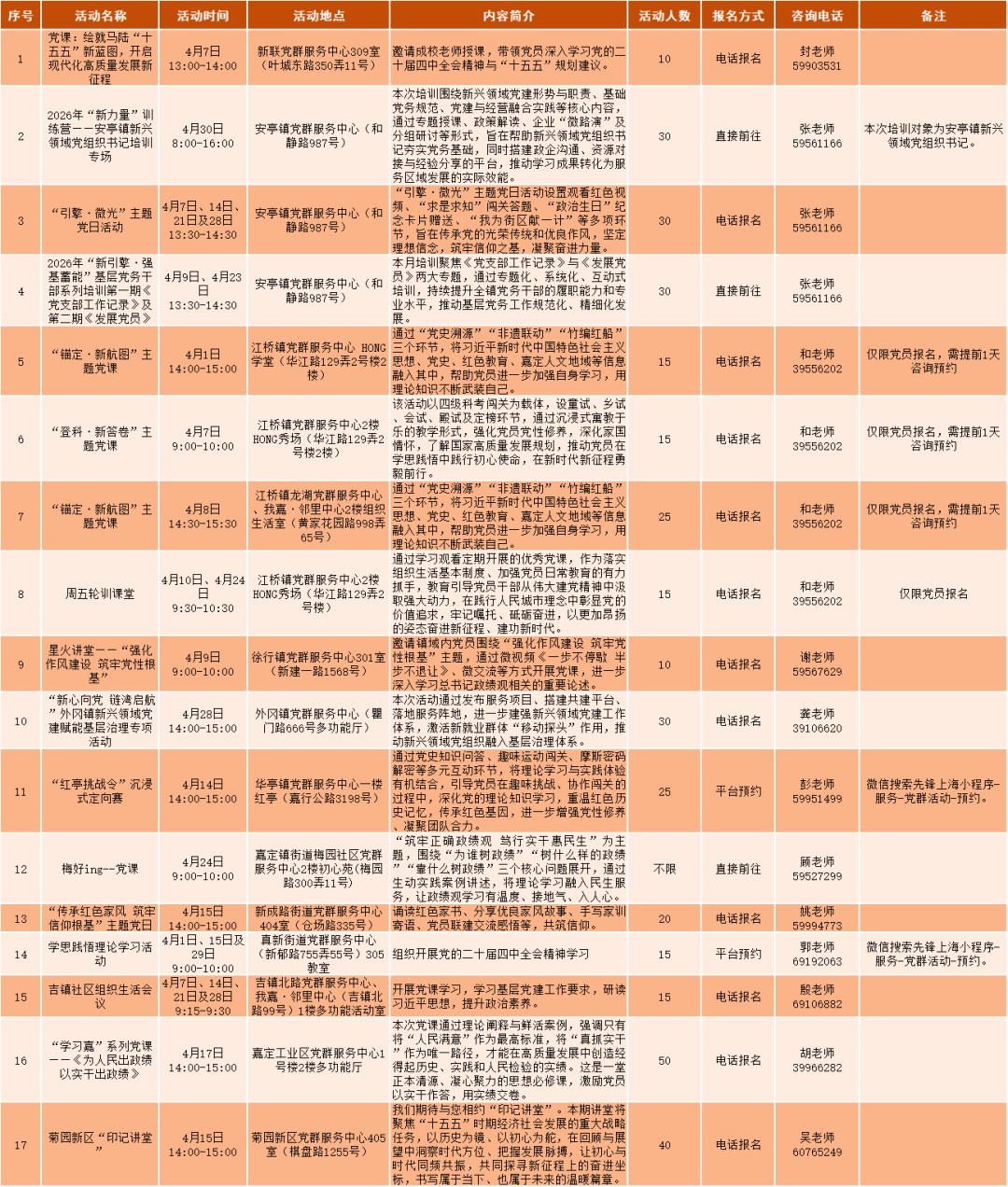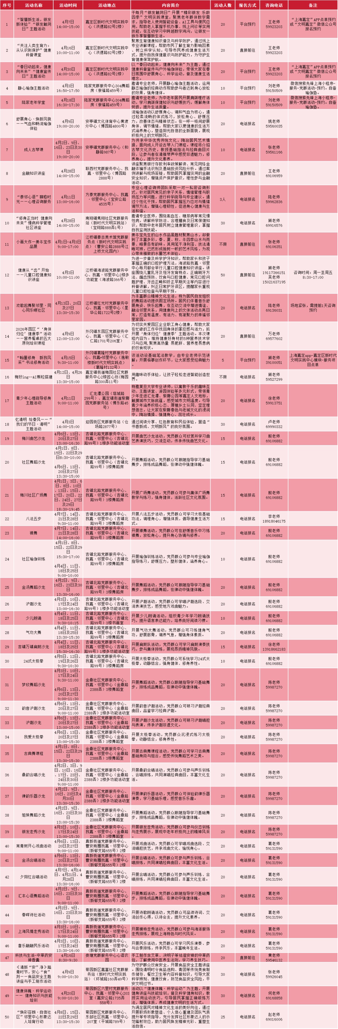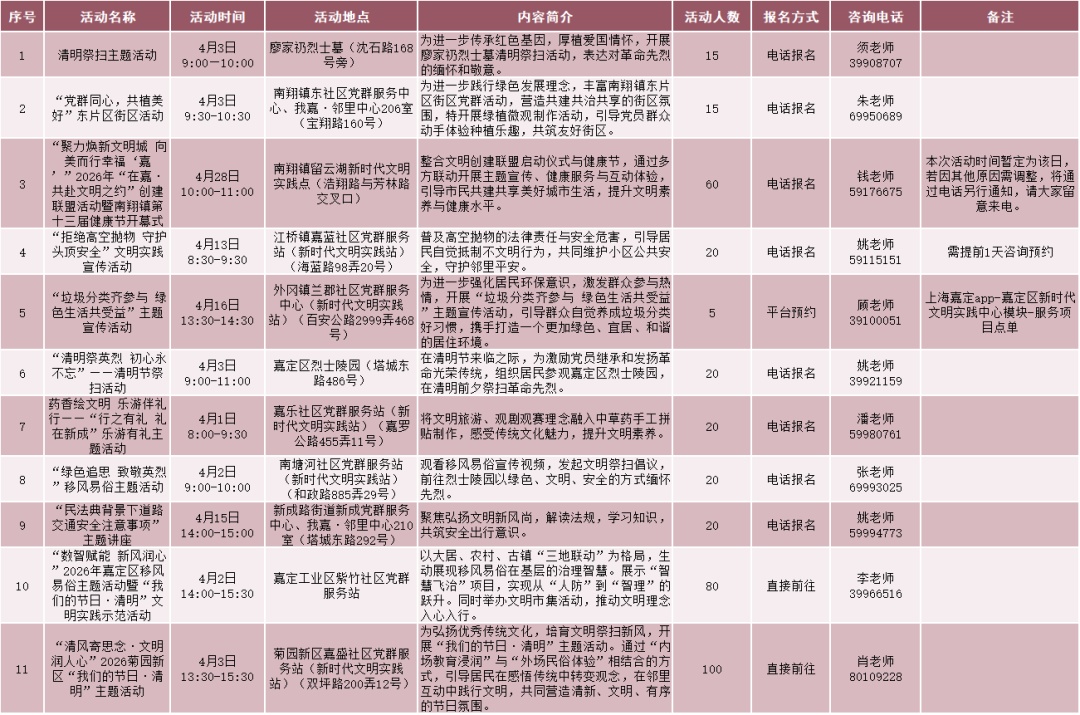 无论你想听党课“充电”、带娃体验非遗、找中医免费把脉,还是单纯想看场电影、学段瑜伽,这份 《嘉定区4月党群服务活动总菜单》 都能让你“一屏尽览、一键直达”。