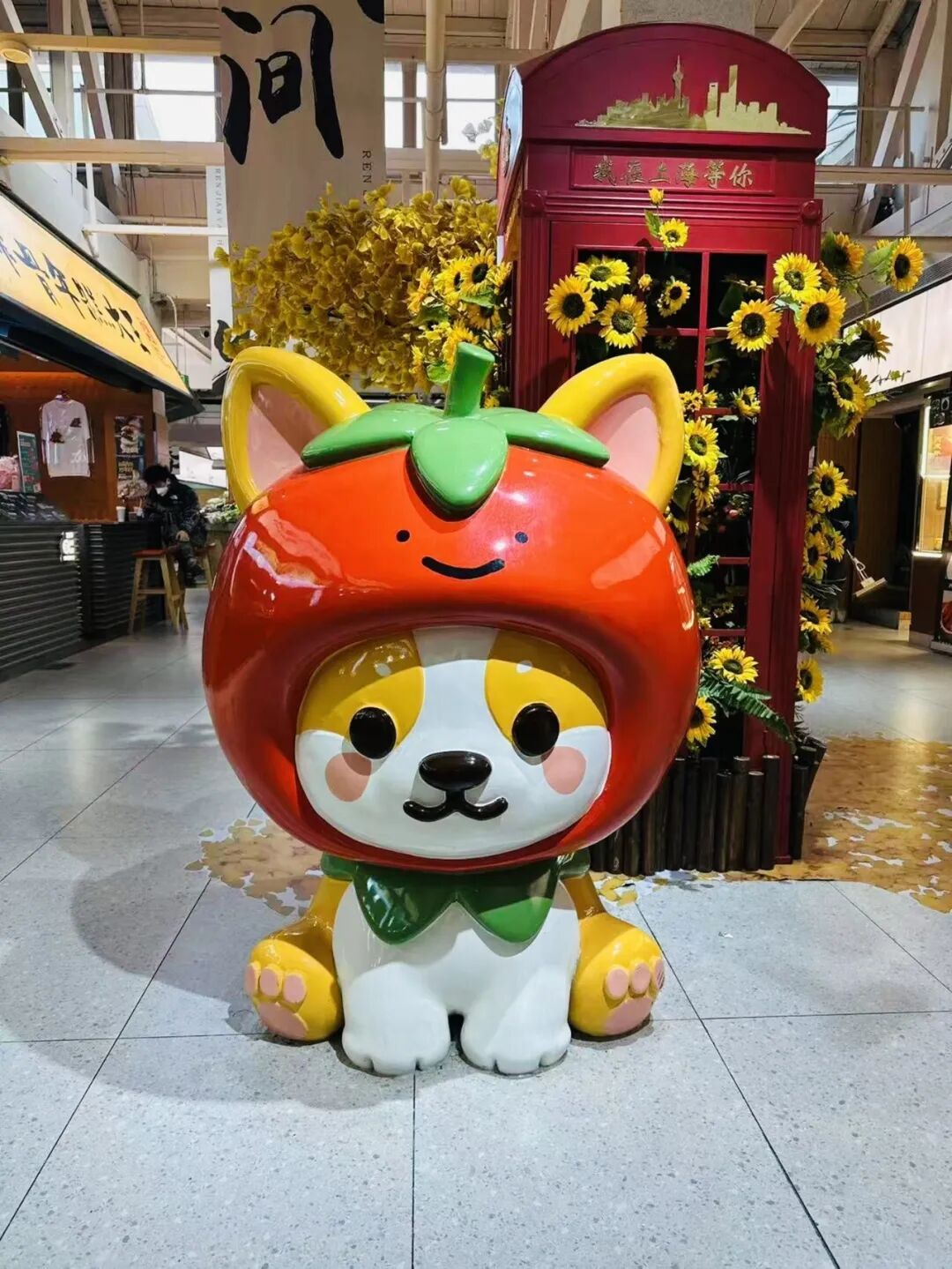 市集入口的电话亭更是必拍点位:红色电话亭里有着随四季变化的装饰,旁边的小狗玩偶憨态可掬,烟火气和文艺感一起装进镜头。