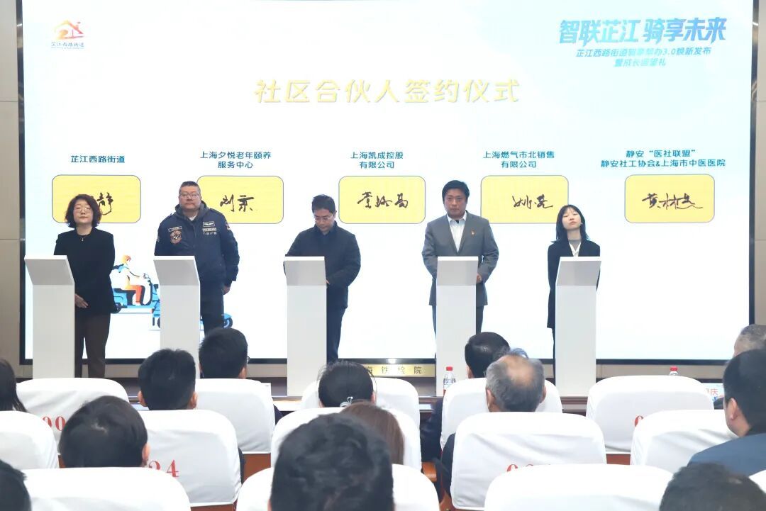 为进一步拓展服务资源、延伸服务触角,现场举行了社区合伙人签约仪式,上海凯成控股有限公司、上海君赛律师事务所、上海市闸北公证处、中国工商银行共和新路支行、上海燃气市北销售有限公司、静安“医社联盟”等9家单位正式成为“骑享帮办”社区合伙人,覆盖法律服务、医疗健康、公证服务、金融保障、燃气安全、养老服务等多个领域。未来,社区合伙人将与“骑享帮办”深度联动,聚焦老年群体居家安全、特殊群体帮扶等民生需求,提供专业化、多元化服务,形成“街道主导、多方参与、共建共享”的服务新格局。