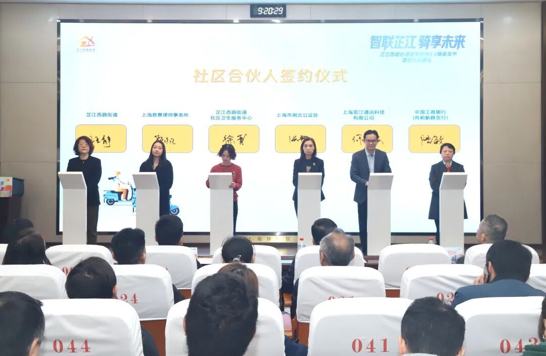 区委常委、常务副区长傅俊,区民政局、芷江西路街道相关负责人,街道各部门、居民区负责人、社区合伙人代表以及“骑享帮办”队员共同见证这一重要时刻。