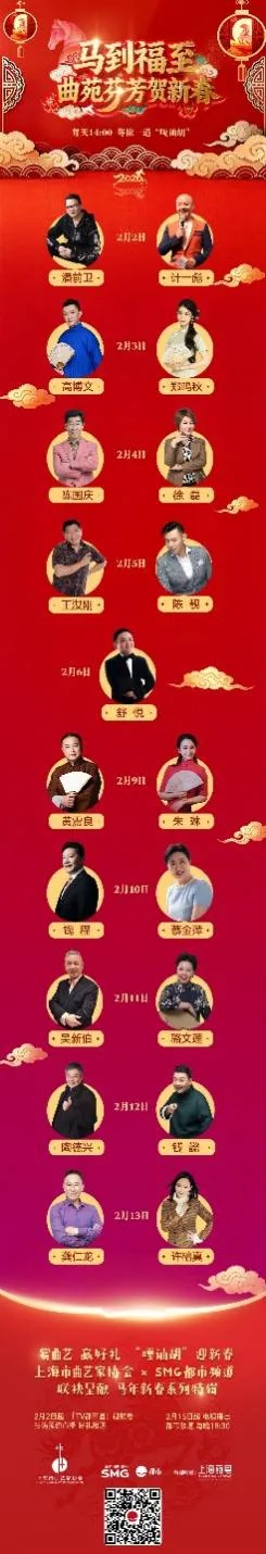为推动上海曲艺事业发展,曲艺名家群体在2026年春节期间通过电视与新媒体平台集体亮相,形成规模效应、引领作用,上海市曲艺家协会与上海广播电视台都市频道共同主办了新春特别节目《马到福至·曲苑芬芳贺新春》。双方紧密协作,以“先网后台”的创新模式,于马年新春期间推出十场系列直播,通过视频号平台实现传统曲艺与数字传播的深度融合。活动累计吸引近45万人次在线观看,总点赞量突破900万次,互动评论达3.9万条,分享次数超6000次,创下同类文化直播新纪录,充分展现了传统曲艺在新媒体环境下的传播力与影响力。