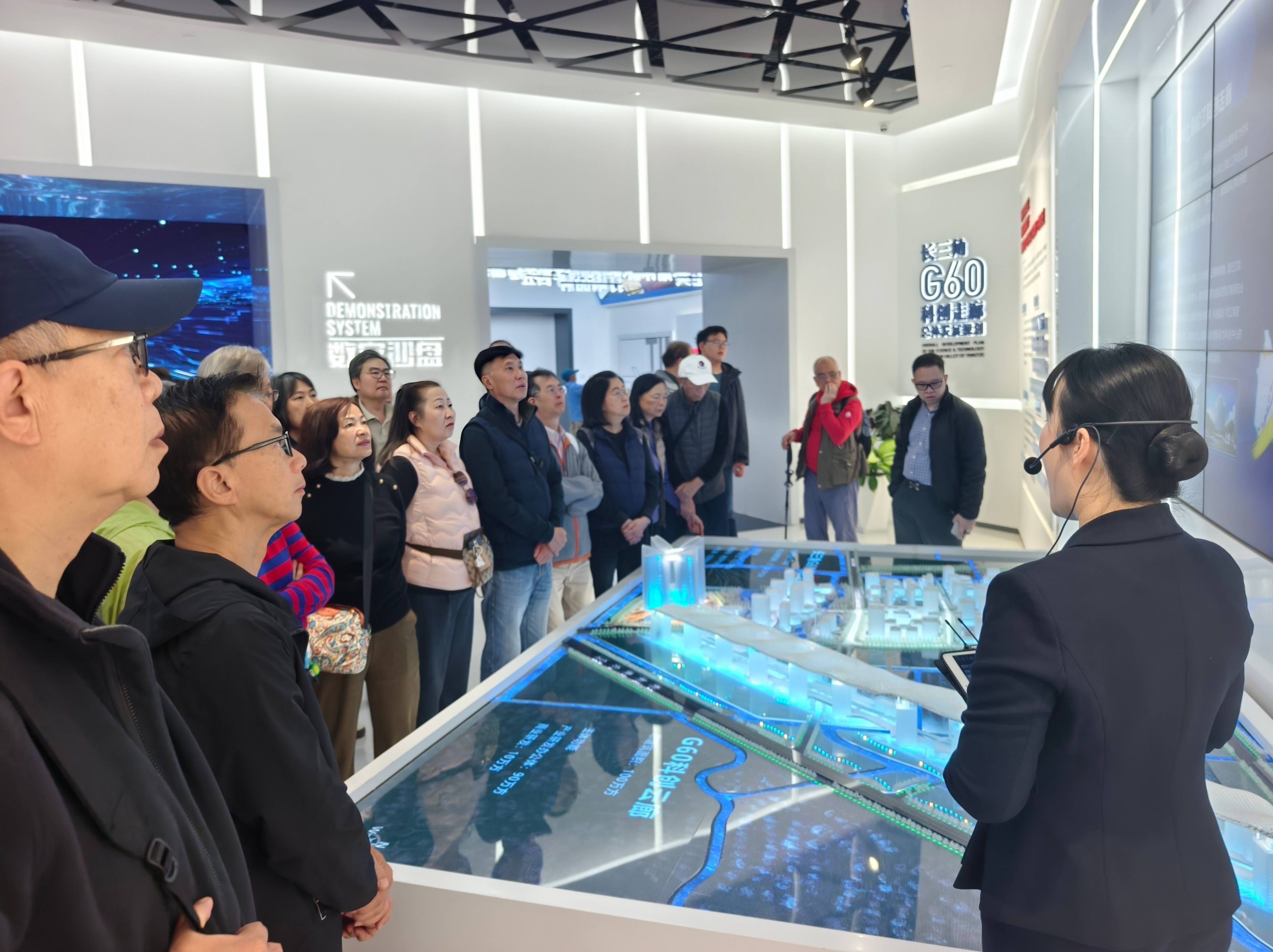旅行团先是兴致盎然地参观了飞科电器和日播时尚体验中心,接着走进G60科创走廊规划展示馆,深入了解作为长三角G60科创走廊策源地的松江近年来蝶变发展的生动实践。团员们或是认真观察半导体、生物医药、新能源等技术应用,或是亲身体验AI模拟驾驶、智能代步机器人等科技产品,沉浸式体验松江科技创新动能勃发的盎然生态。