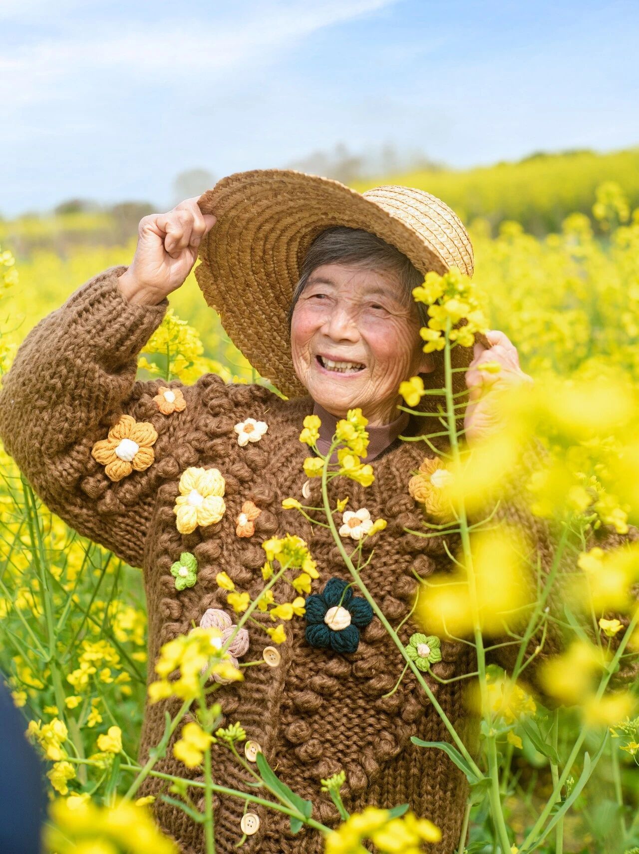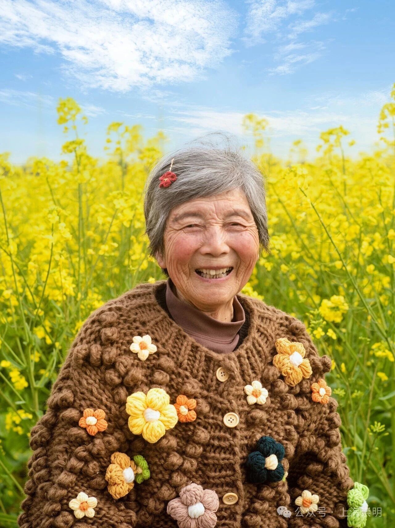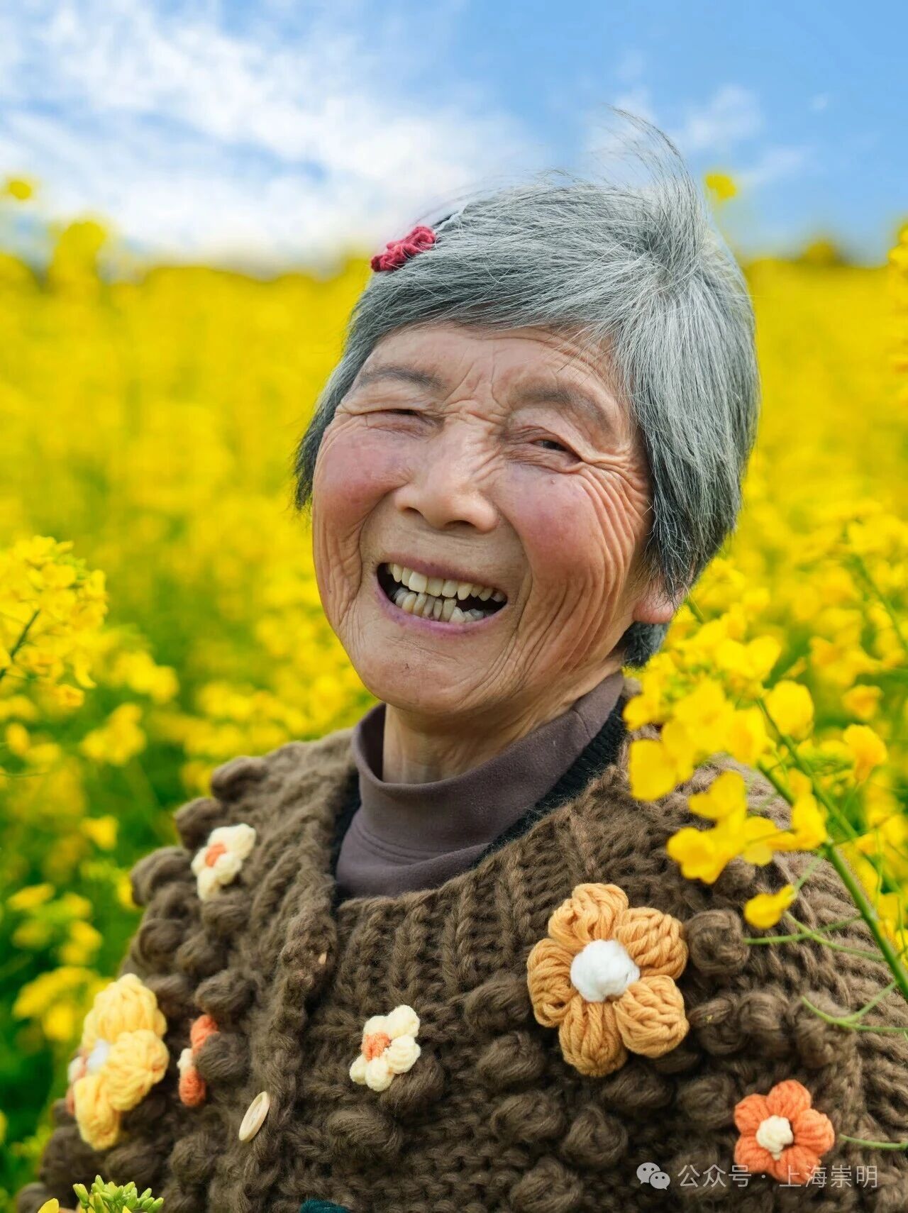 春日的崇明,油菜花金黄热烈。91岁吴家好婆快乐的笑脸,比春天盛放的花儿还美。