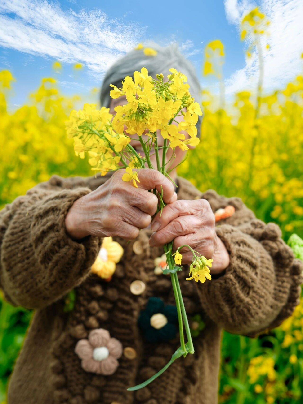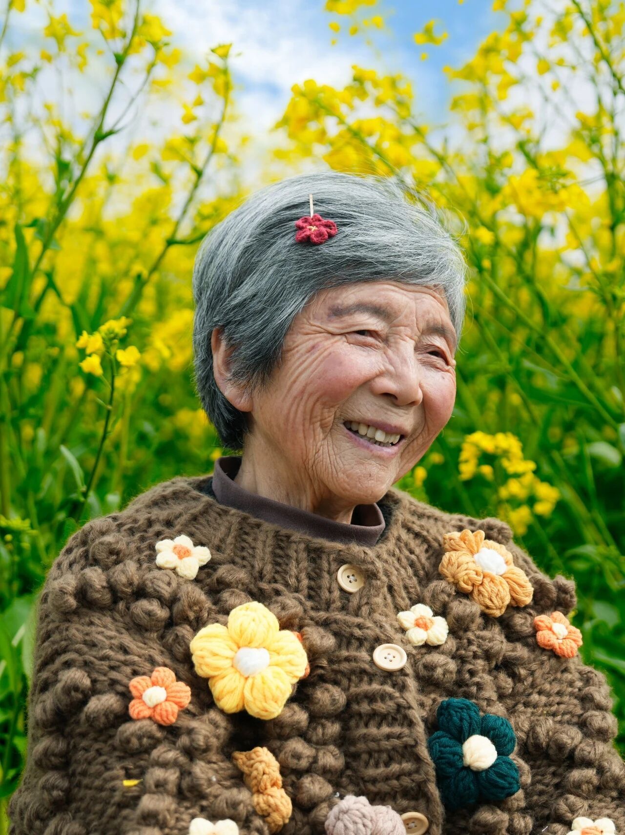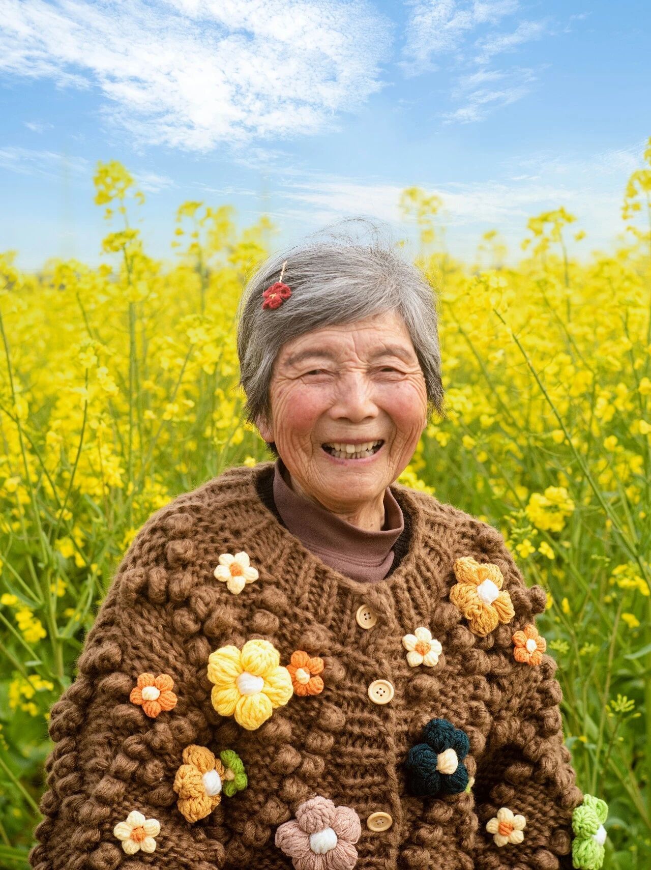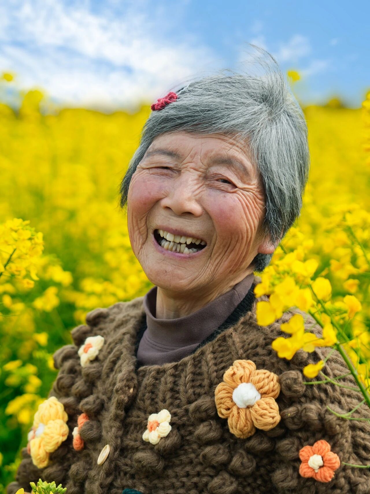 春日的崇明,油菜花金黄热烈。91岁吴家好婆快乐的笑脸,比春天盛放的花儿还美。