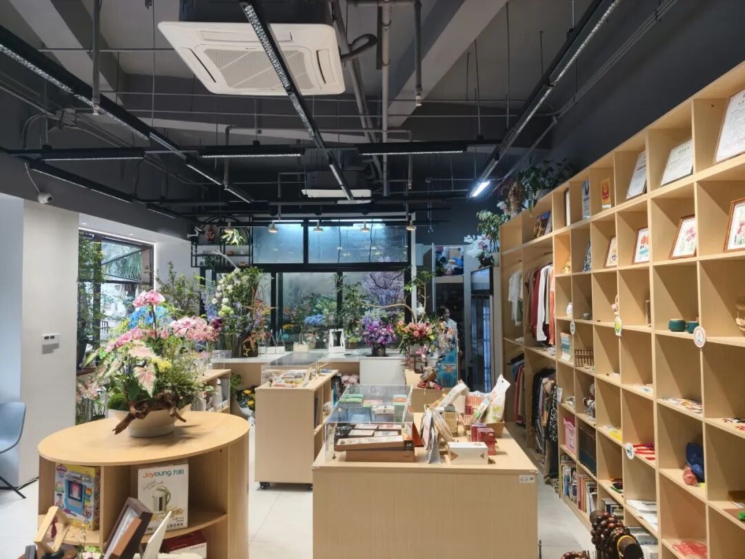 为了将慈善超市的公益属性进行到底,焕新后的超市引入了合作伙伴这一概念,鲜花坊、咖啡吧台、宠物柜台等元素加入到其中。
