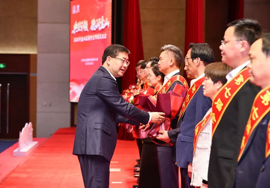 会上,袁罡为15名获评第七届全国文明村镇、单位和第三届全国文明家庭、校园荣誉的代表送上鲜花。