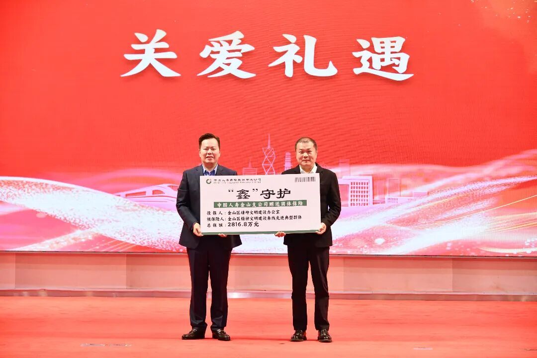 同时,为进一步做好对先进典型的关爱礼遇,区文明办以专项保险的形式,联合中国人寿保险股份有限公司上海市分公司,为区内精神文明建设条线先进典型群体送上一份实实在在的专属保障。中国人寿金山支公司总经理吴文杰表示:“我们希望用这份守护向榜样致敬,也为先进典型们筑起一面坚实的‘防护墙’,同时带动更多人用实际行动参与精神文明建设,践行文明风尚。”
