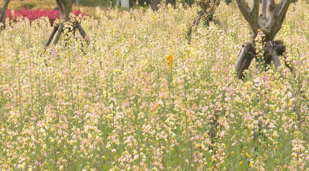 喜林草小巧精致,搭配灵动飘逸的虞美人,高低错落、层次分明。与一旁的樱花、油菜花交织在一起,就像一幅五彩斑斓的春日画卷,生动怡人。据园方介绍,截至目前,籽播公园的籽播花卉面积已达5800多平方米。