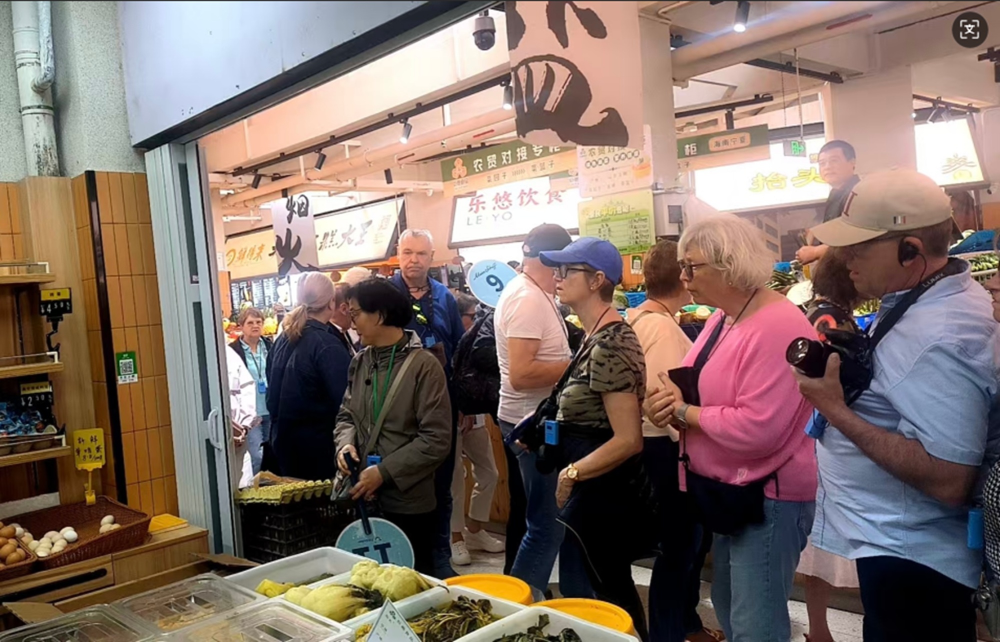 开春以来,市集里外国友人越来越多。不少外国旅行团放弃常规景点,特意走进这座社区菜场,感受上海最本土的一面。