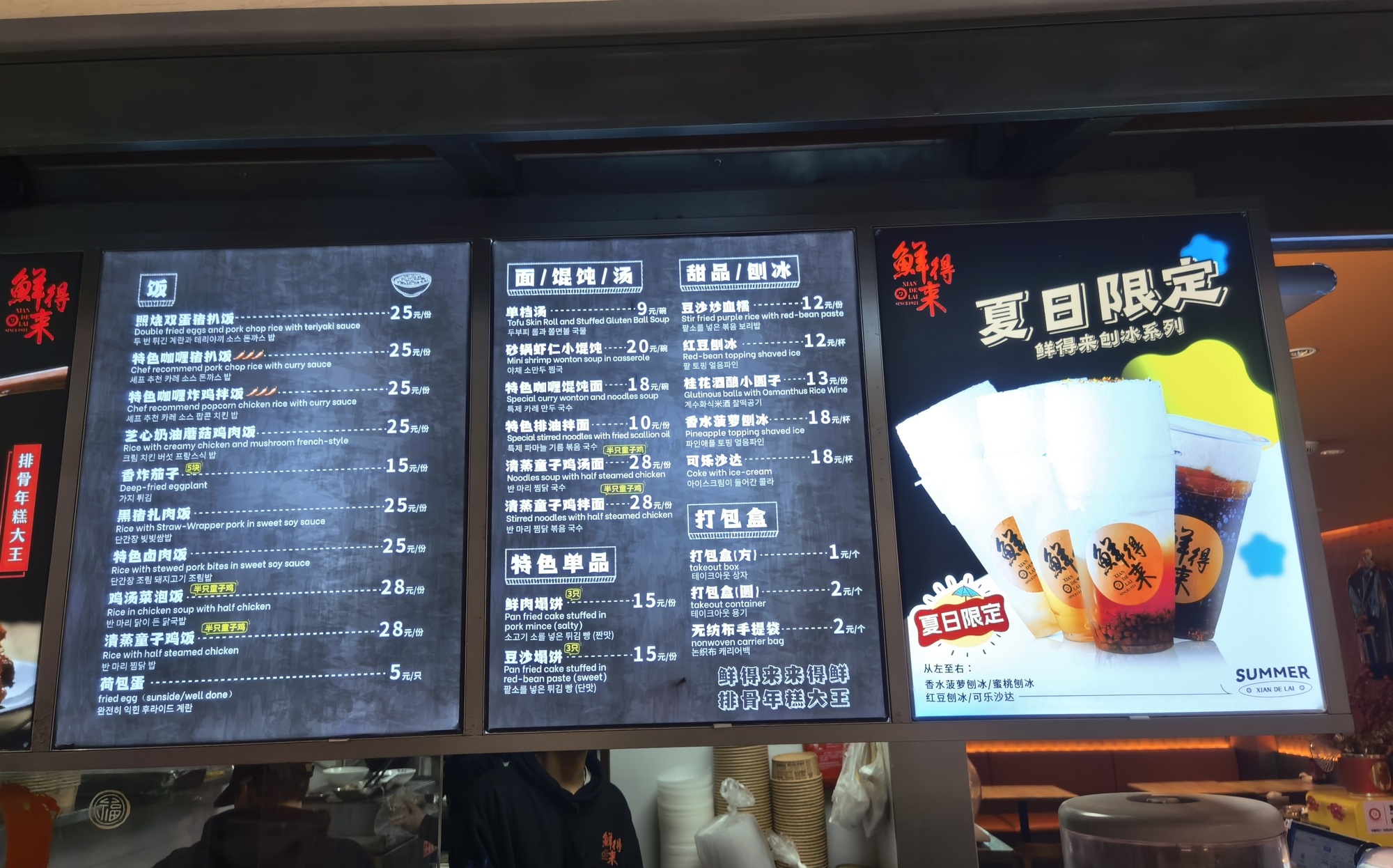 为了迎接国际游客,市集悄悄做了不少升级,多国语言标识随处可见,“鲜得来”还贴心配备了中英韩三语菜单。摊主们也会用简单的英文打招呼,让外国朋友逛得舒心、买得明白。