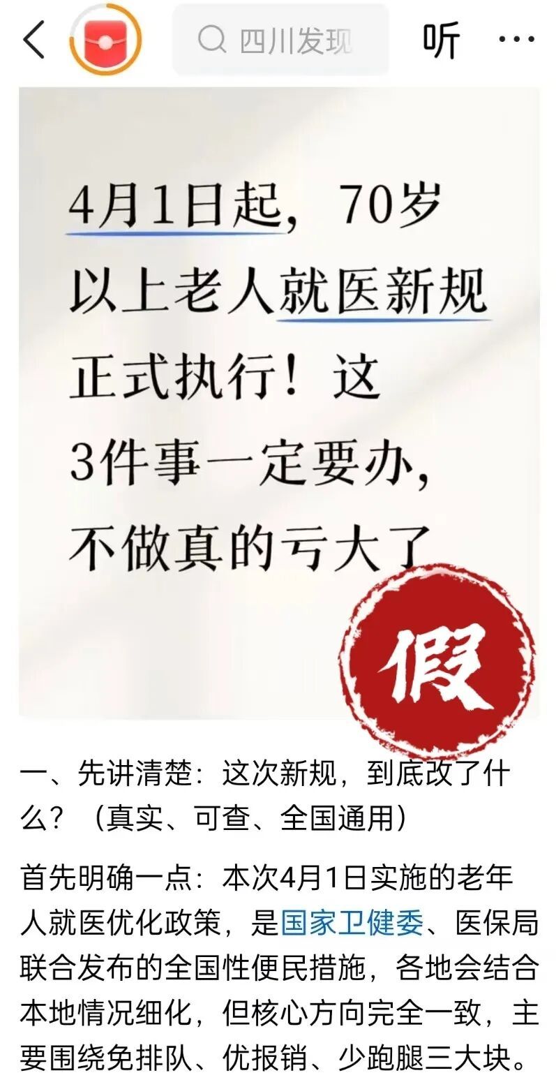 70岁以上优先就诊、医保亲情账户、慢病长处方等都是实行多年的便民措施,并无相关新政出台。