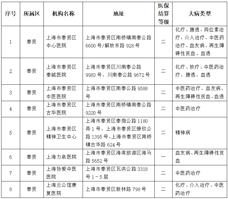最后附上奉贤区具有大病资质的医疗机构,有需要的市民可前往就医。