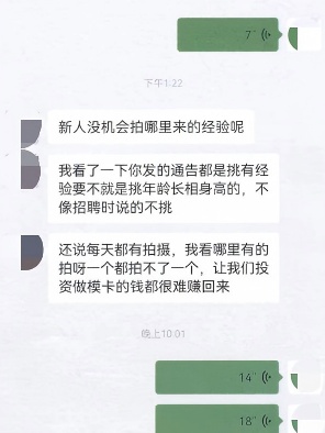 2024年5月,小程(化名)为赚外快在招聘平台找到了一家可以提供“兼职模特”工作的公司。公司面试官称不需要外貌和相关工作经验,很快与小程约定了面试时间。当小程实地走进该模特公司后,却发现公司没有明显的名字、招牌,办公室内仅坐着4至5人办公。