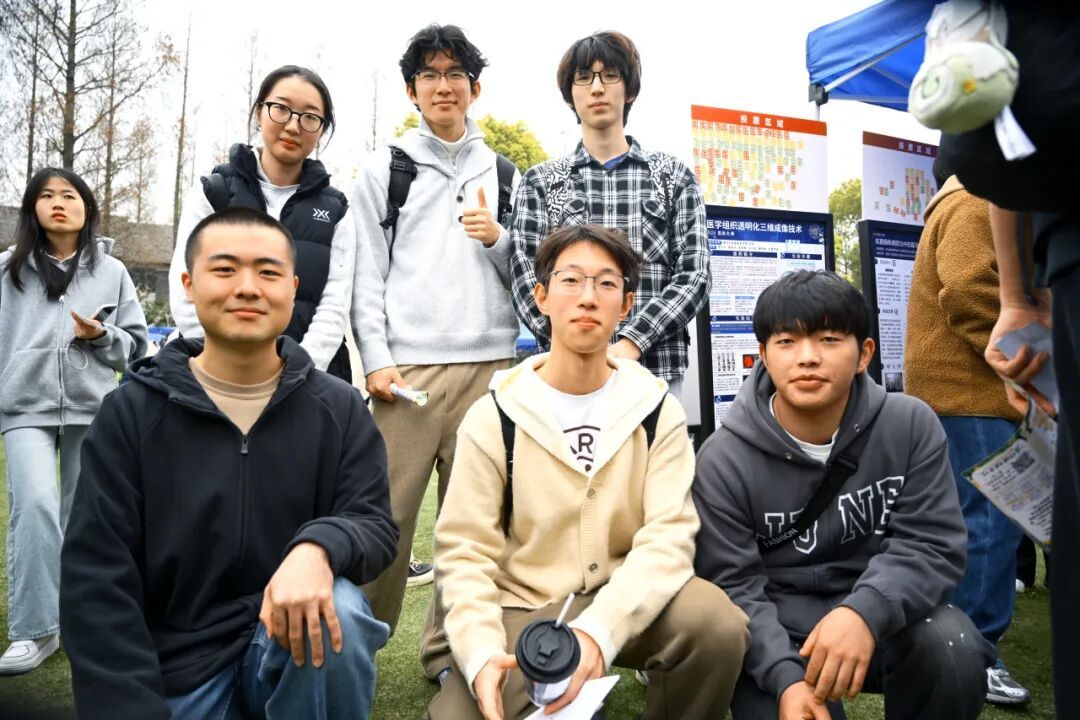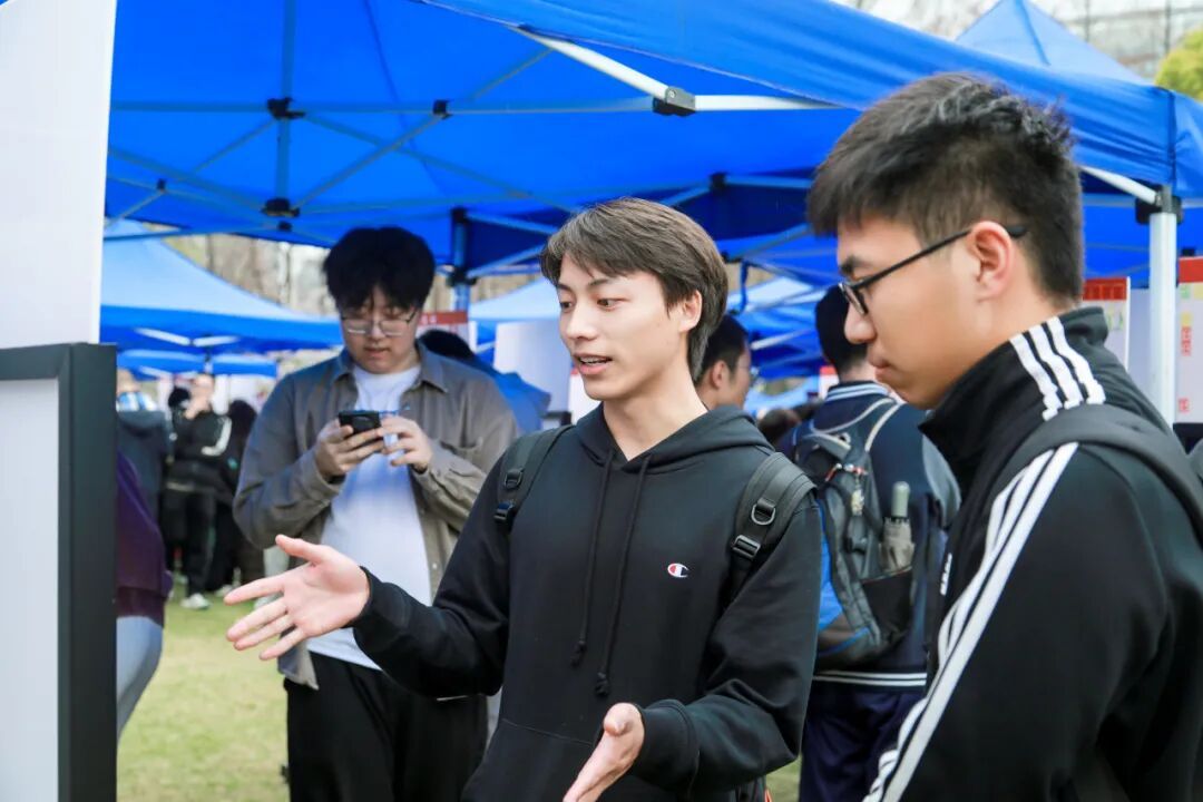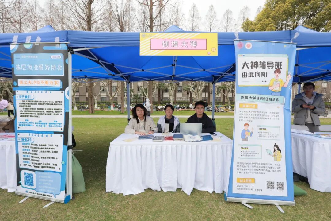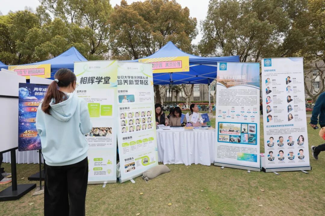 在海报摊位之外,场地外围设有“复芏计划”特色项目介绍区,展示着学校对本科生科研的持续支持。第一届“悟”阶段的高票课题也在现场展出,成为学弟学妹们的参考范本。还有“数院大神”“益创星球”等学生社团的摊位,吸引着往来同学。