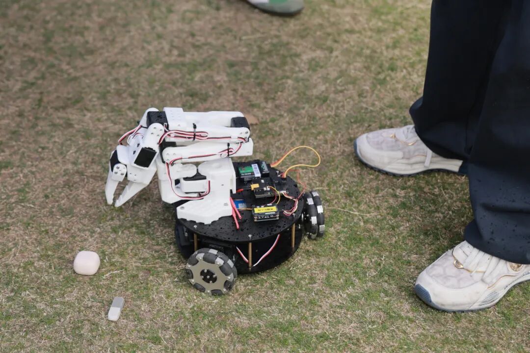 《磁力辅助》课题海报旁的同学用3D打印“手搓”的实验装置摆在海报旁,吸引了不少人驻足。《视觉艺术经典中的精神生态学镜鉴》课题的同学们,自制了印有艺术家代表作品的书签,小巧精致。《多自由度机械臂控制器设计》课题里用到的机械臂,在现场做起了演示。