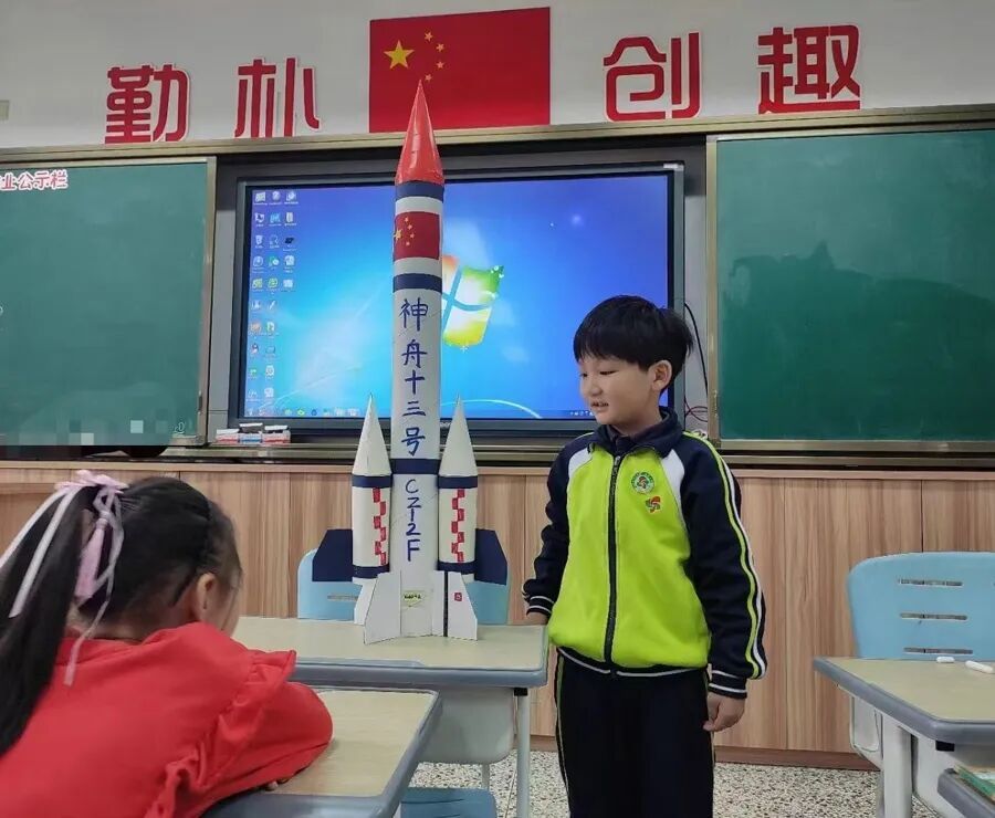 张书墨平时热衷航天科技活动,得益于小学二年级时,他和爸爸制作了一个很大的火箭模型,不仅获得小伙伴点赞,更令他迷上了火箭和浩瀚的宇宙。
