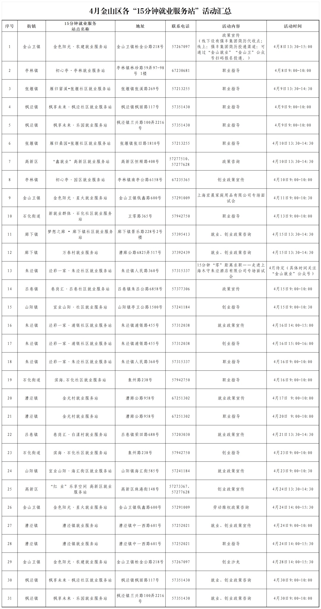 4月,金山区“15分钟就业服务站”