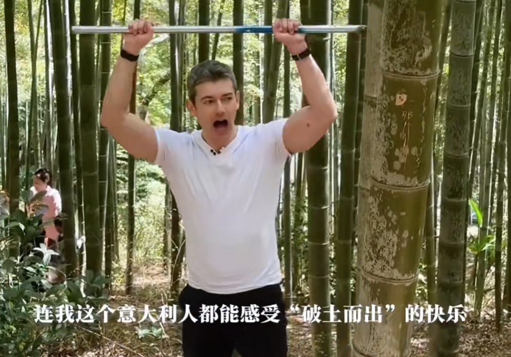 记者注意到,竹林里除了随处可见的挖笋家庭,还有不少外国游客也加入其中,并在现场拍摄vlog记录下这段难忘的经历。“我们外国人以为只有熊猫才吃竹子,没想到中国人也吃!”一位身着粉色汉服的外国游客面对镜头,一边自拍,一边用流利的中文笑着说道。