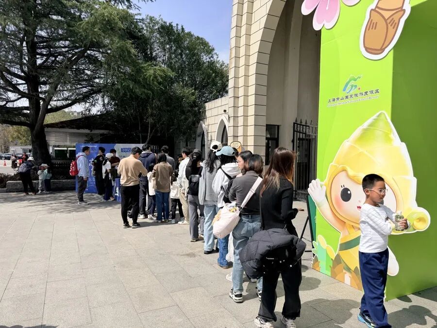 3月28日阳光甚好,下午1点不到,佘山国家森林公园东佘山园大门外排起了十几人的小长队,勾起了不少路人的好奇心,“这里在排什么队啊?”