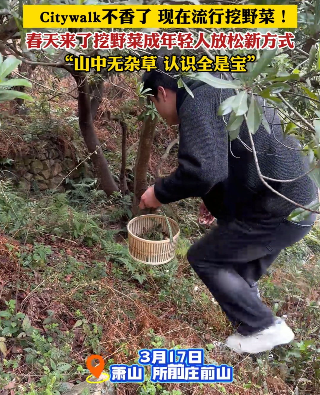 自称“打野人”的年轻人们互相分享城郊隐藏的挖野菜地点,相约一起到河边、公园、田野挖草头、马兰头、荠菜……远离城市喧嚣环境,走进乡村挖野菜不仅成为了一种放松身心的娱乐方式,还演变成了结交新朋友的社交手段。