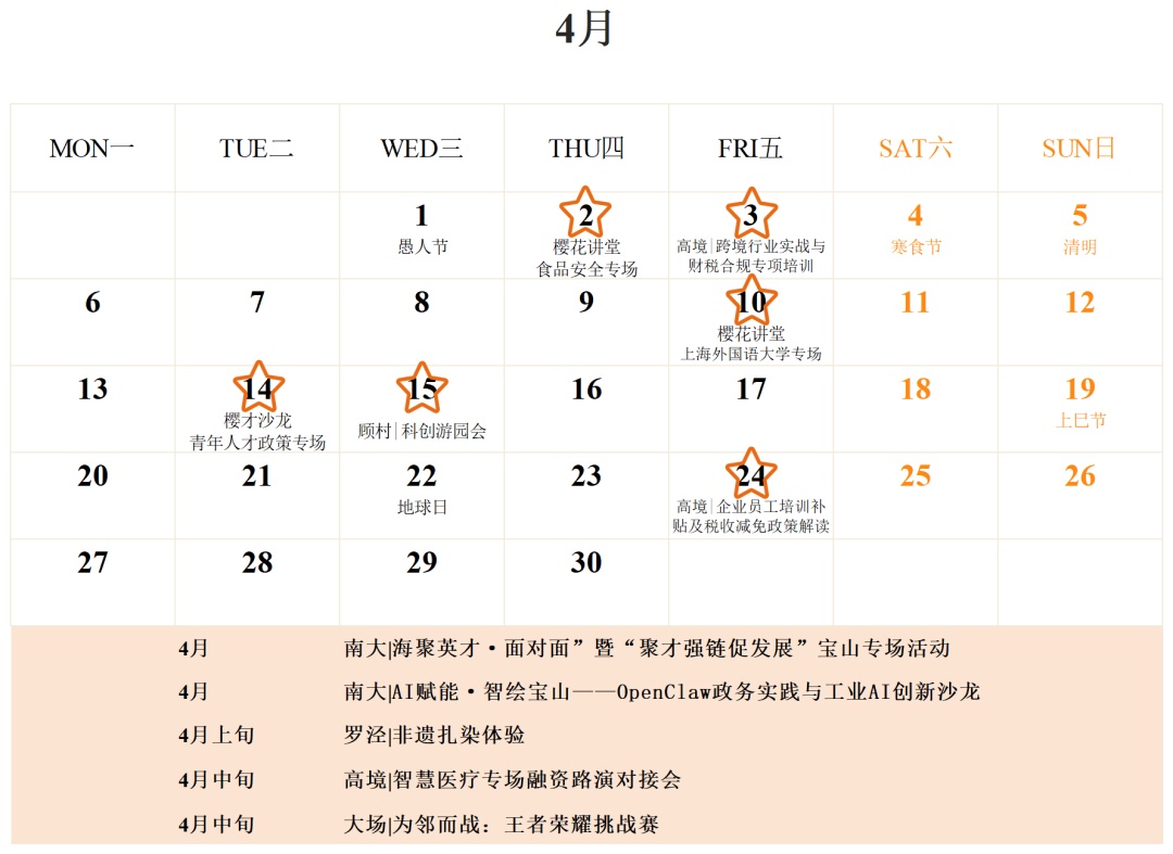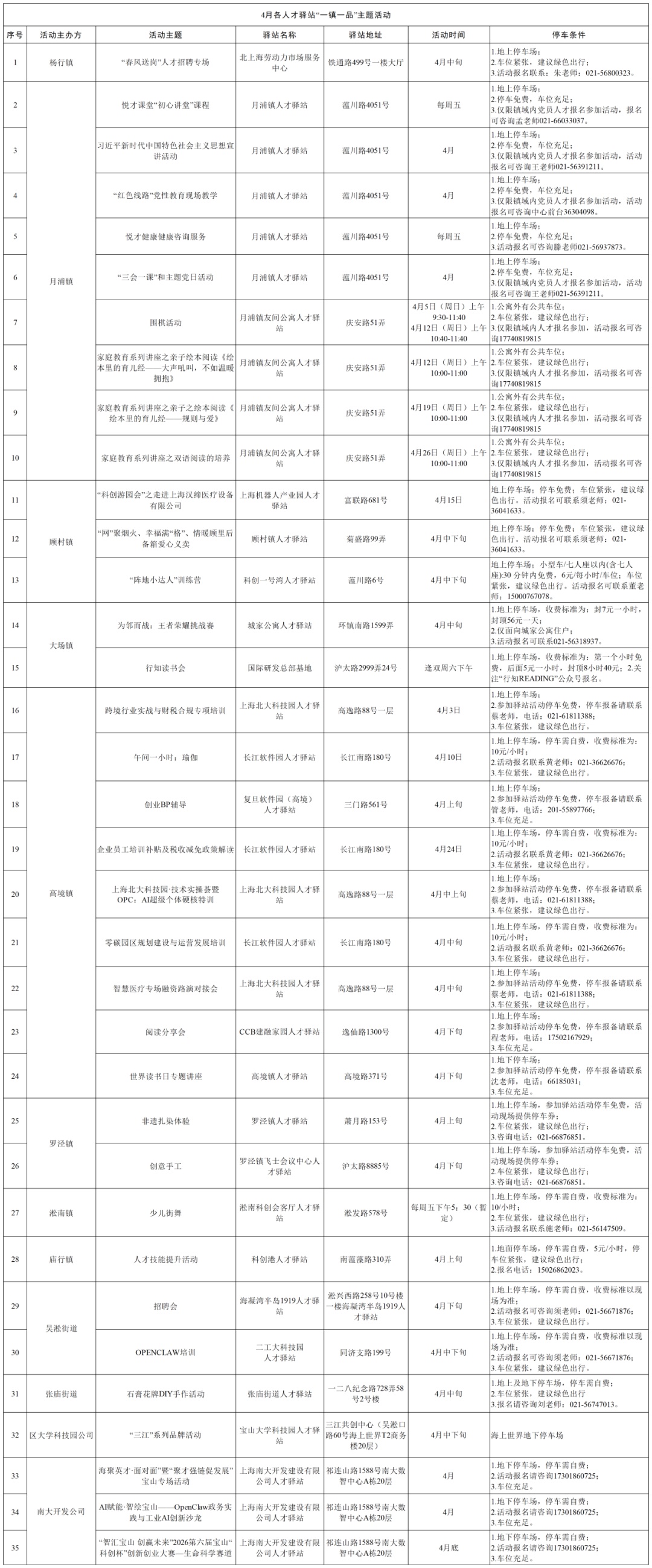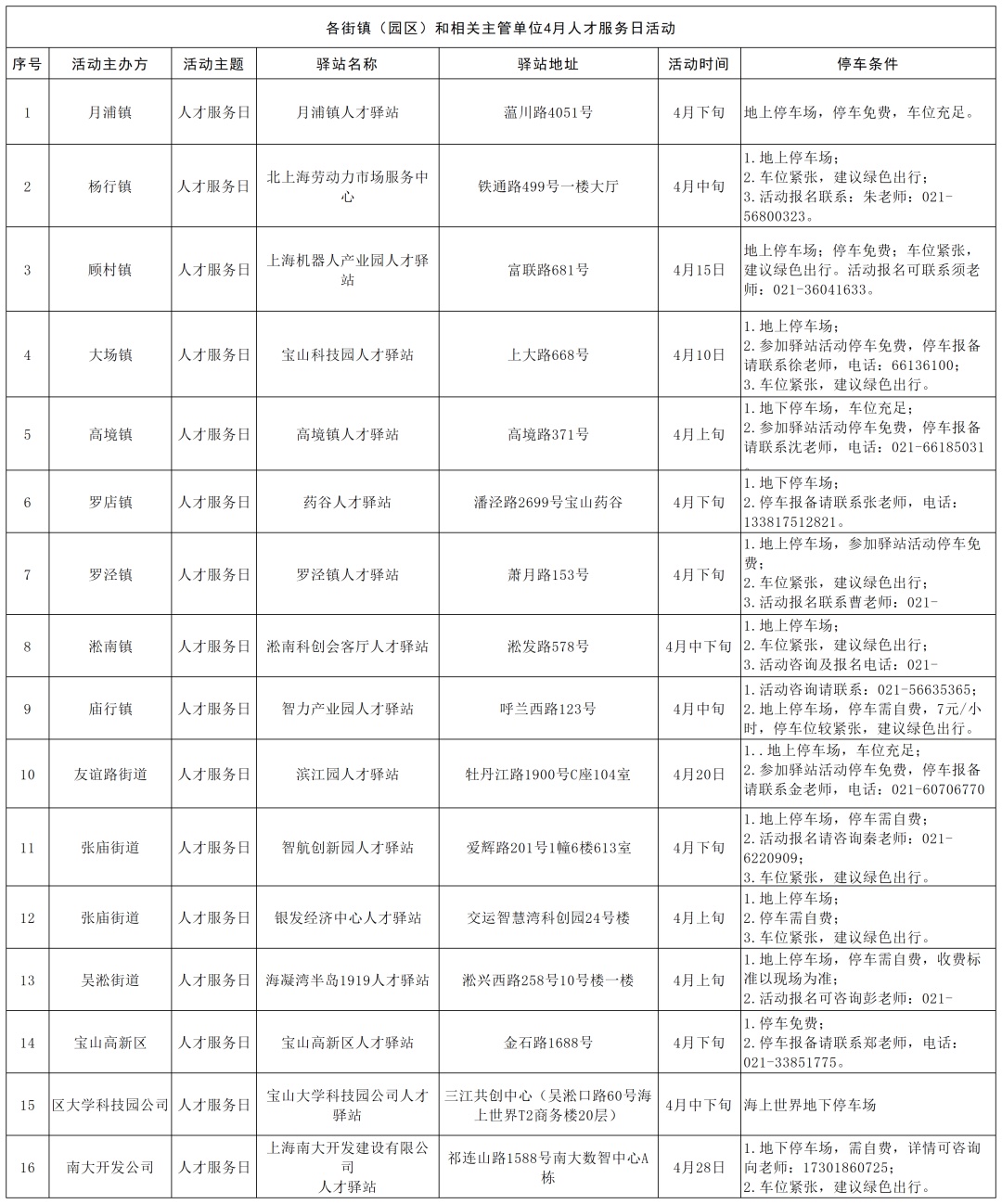 4月宝山区各人才驿站