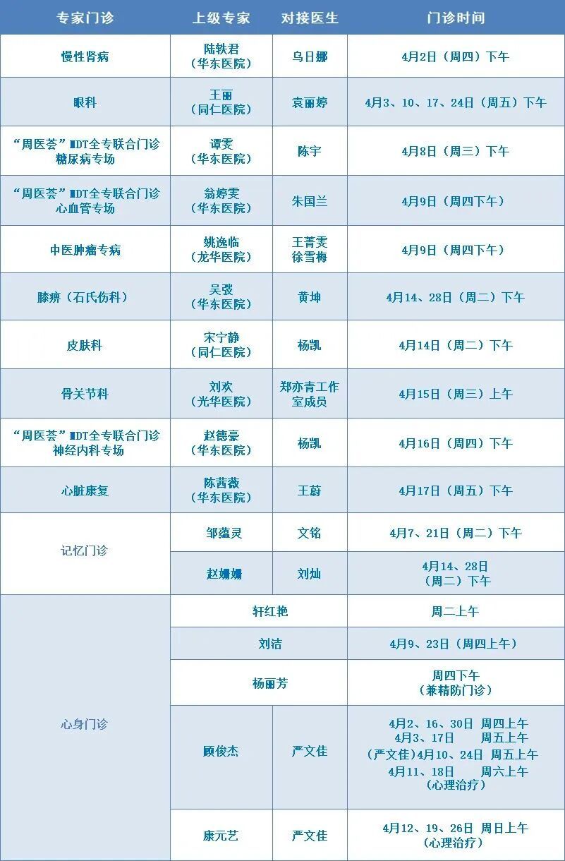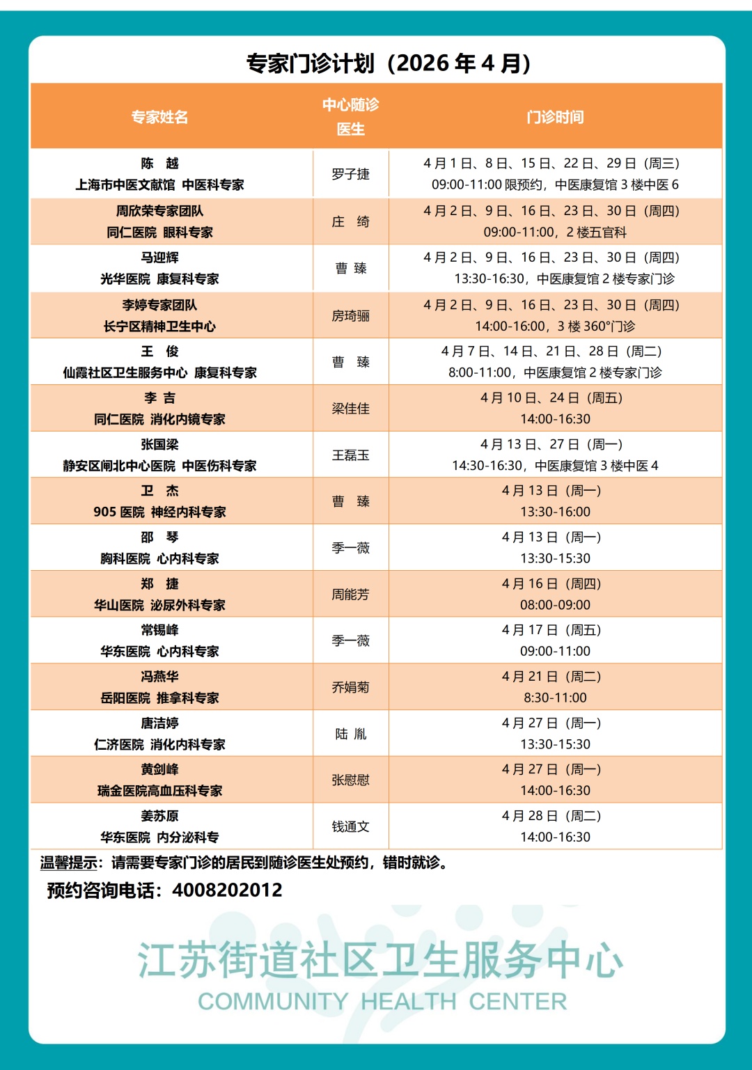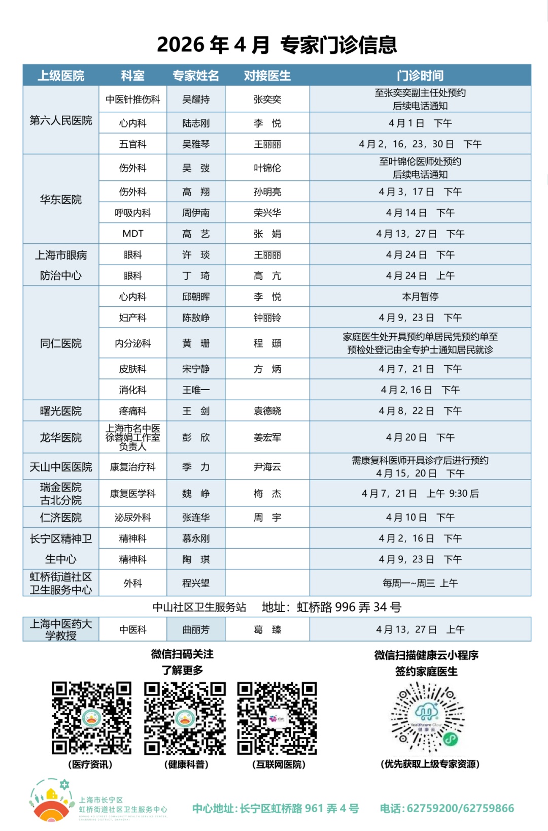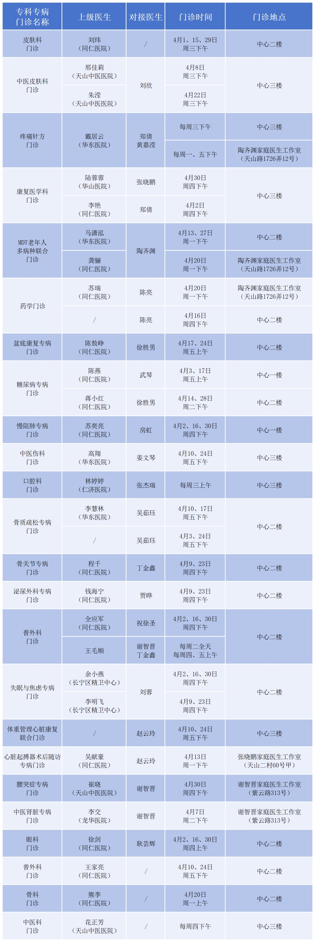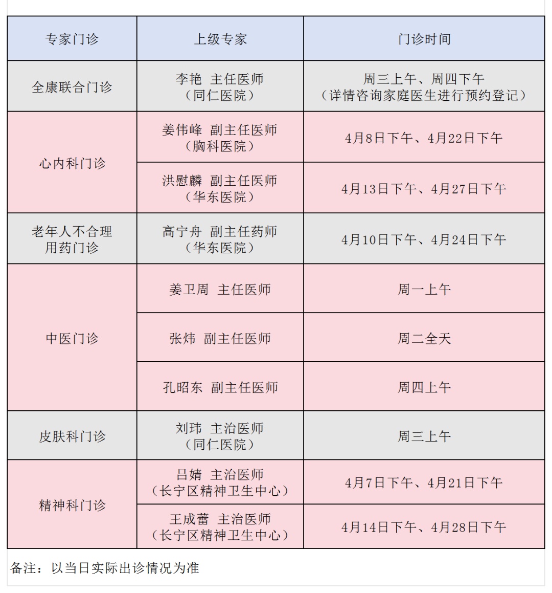 备注:以上专家门诊可以通过中心对接医生预约,也可以通过家庭医生预约。