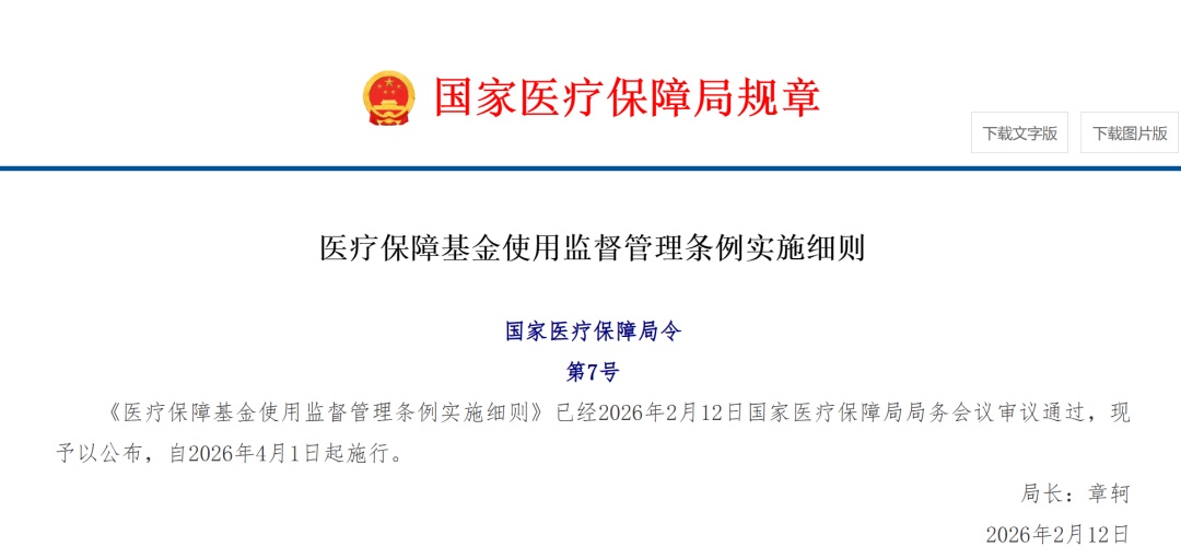 国家医保局发布的《医疗保障基金使用监督管理条例实施细则》,自2026年4月1日起施行。《细则》对定点医药机构、参保个人等的欺诈骗保情形作出明确界定。