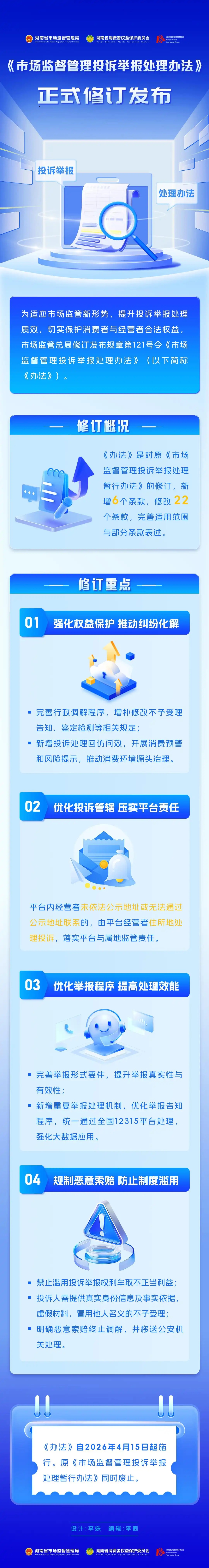《市场监督管理投诉举报处理办法》将于2026年4月15日起施行。