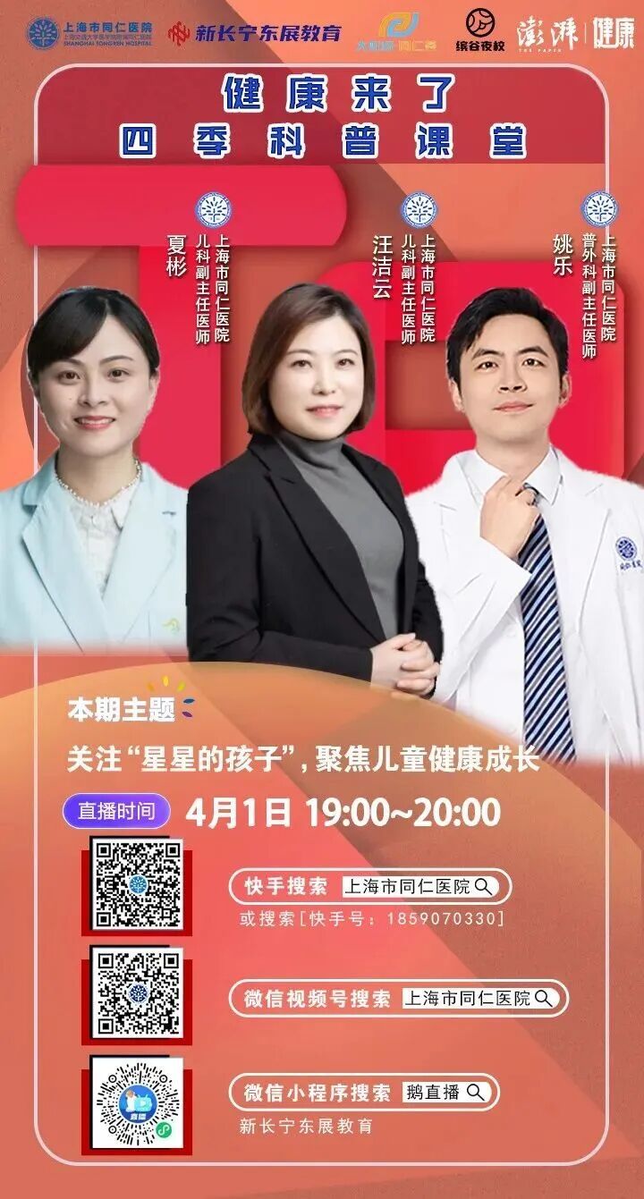 “大虹桥·同仁荟健康直播”由“大健康智慧公益直播厅”更名而来,是全国首家5G健康公益直播厅。本次直播的“主角”是上海市同仁医院儿科副主任医师夏彬、汪洁云,普外科副主任医师姚乐,主题是“关注‘星星的孩子’,聚焦儿童健康成长”。