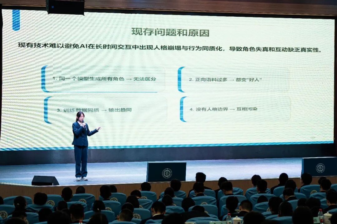 为此,施悦涵尝试将AI拆分到不同API中,并采集外卖员、网络主播等真实职业的语言数据,让每个AI都有了自己的人设,再放置在一个“空间”里进行交流。经过7天的观察,她发现,AI的相似度降低,语言多样性和个性明显提升,证明了研究的可行性。