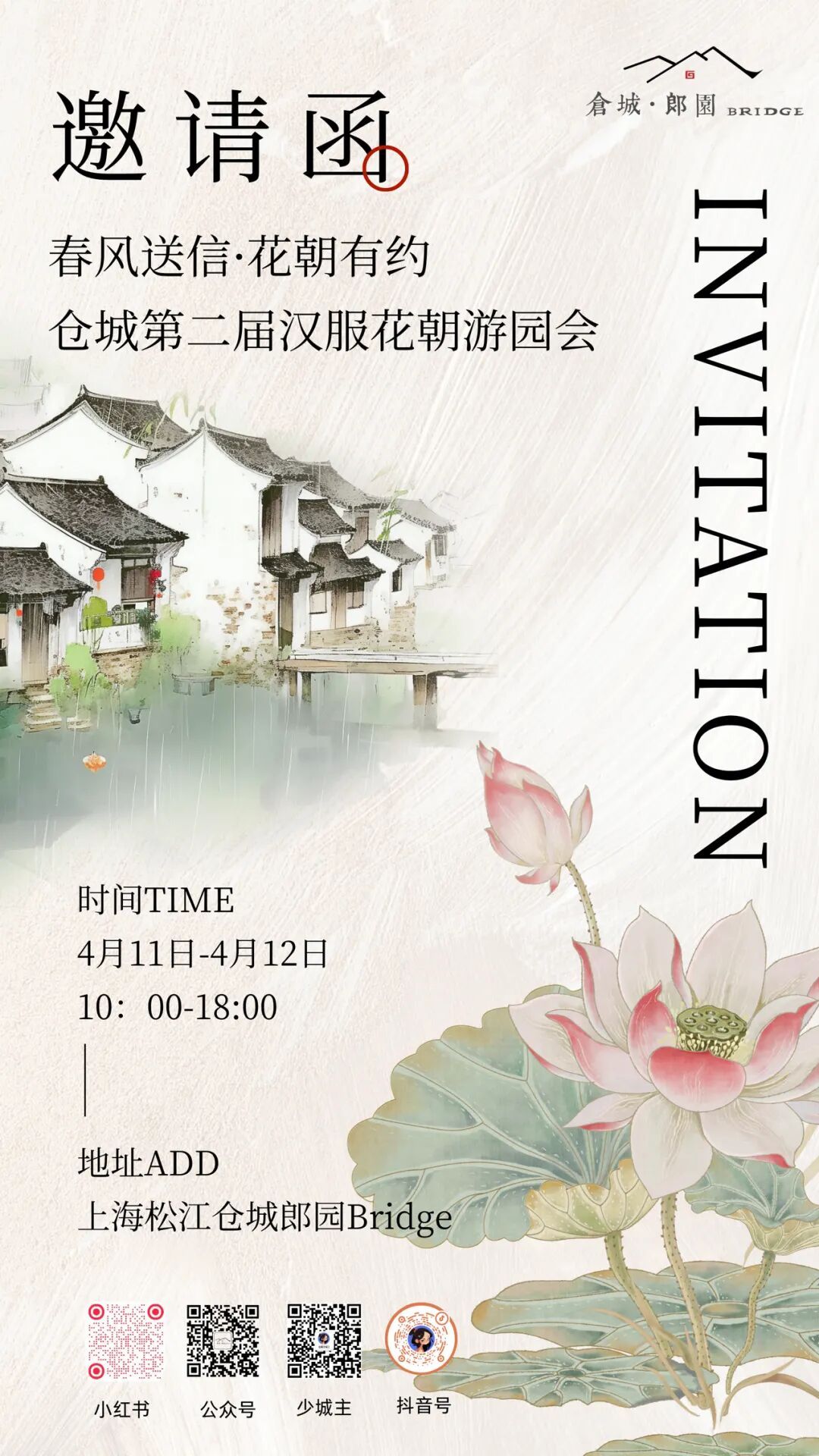 春风拂过仓城老街,花枝漫上黛瓦青墙,历经一载期盼,仓城郎园Bridge第二届汉服花朝游园会如约而至!