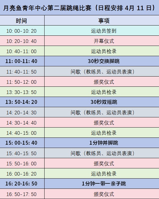 赛事时间:4月11日(周六)10:00-17:10