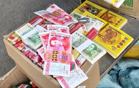 案情简介:2025年3月,中国人民银行商丘市分行联合夏邑县民政局、市场监管局开展“清明节”殡葬用品联合检查,发现夏邑县某纸业公司经营部销售“人民币版”冥币。