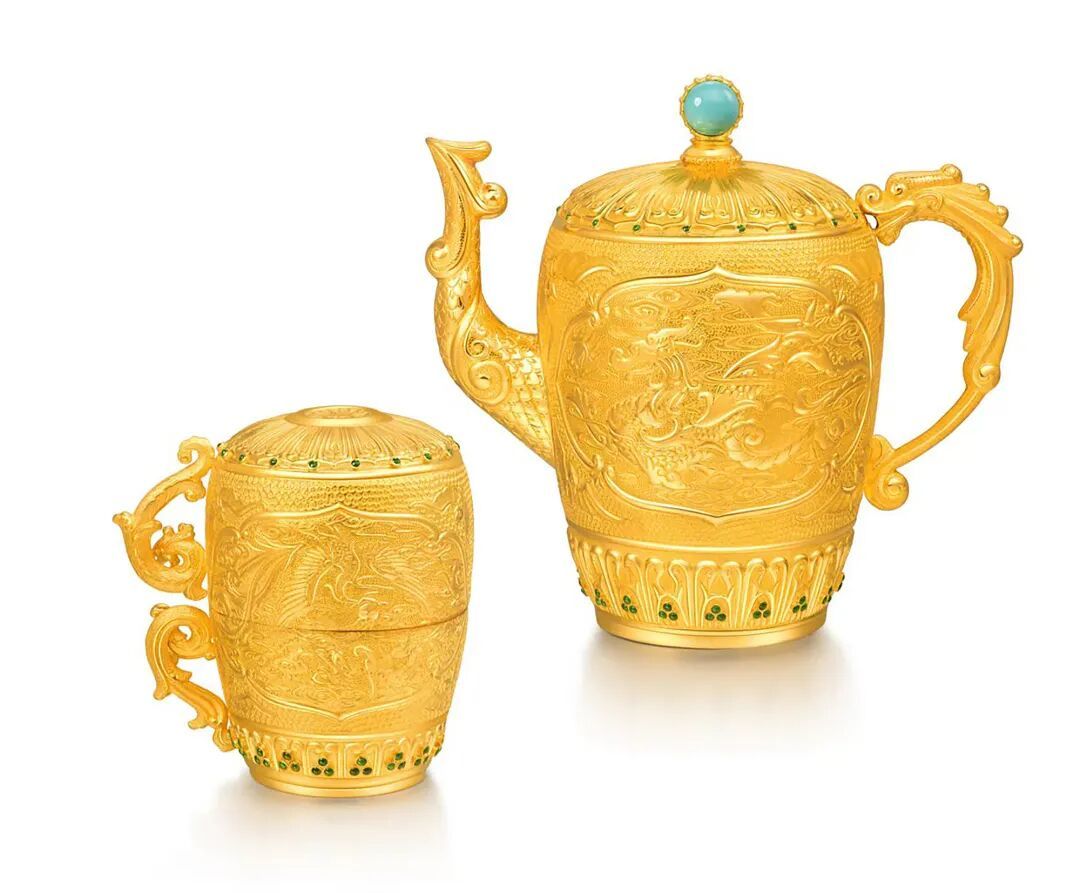 走进工坊,叮叮当当的敲打声不绝于耳。中国工艺美术大师、国家级非遗—老凤祥金银细工第六代传承人沈国兴正带领团队潜心打磨作品。“虽然造型一样,但每个技师做出来的花纹都不同,呈现出独特的效果。”沈国兴指着一把精美的黄金龙凤壶说道,越来越多顾客开始选择具有特别意义的定制款产品。