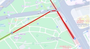 左图为上海地铁2号线在浦东段(广兰路至世纪大道)的导航图,可以看到线路沿华东路、世纪大道等有多处弯曲。而官方线路图中(右图)同一段的呈现,被简化成一条清晰的斜直线。
