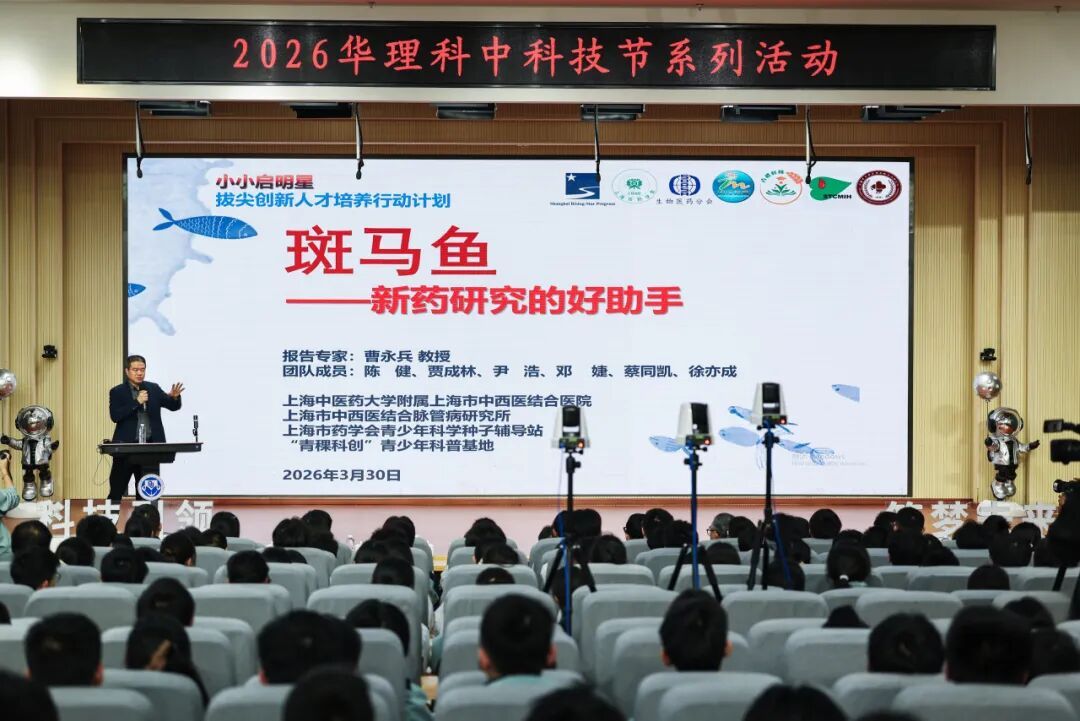 本次活动邀请上海市中西医结合脉管病研究所所长曹永兵教授,带来题为“斑马鱼——新药研究的好助手”的科普讲座,带领师生走进模式动物斑马鱼的奇妙世界,感受生物医药与中医药创新研究的独特魅力。